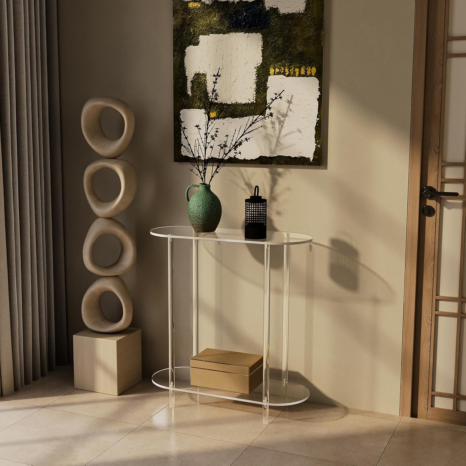 Acrylic Console Table, Oval, 29.5" Small Entryway Table, Clear Entry Table for Sofa, Foyer, Hallway, Living Room, Easy Assembly, 2 Tier, 11.8" D x 31.5" H