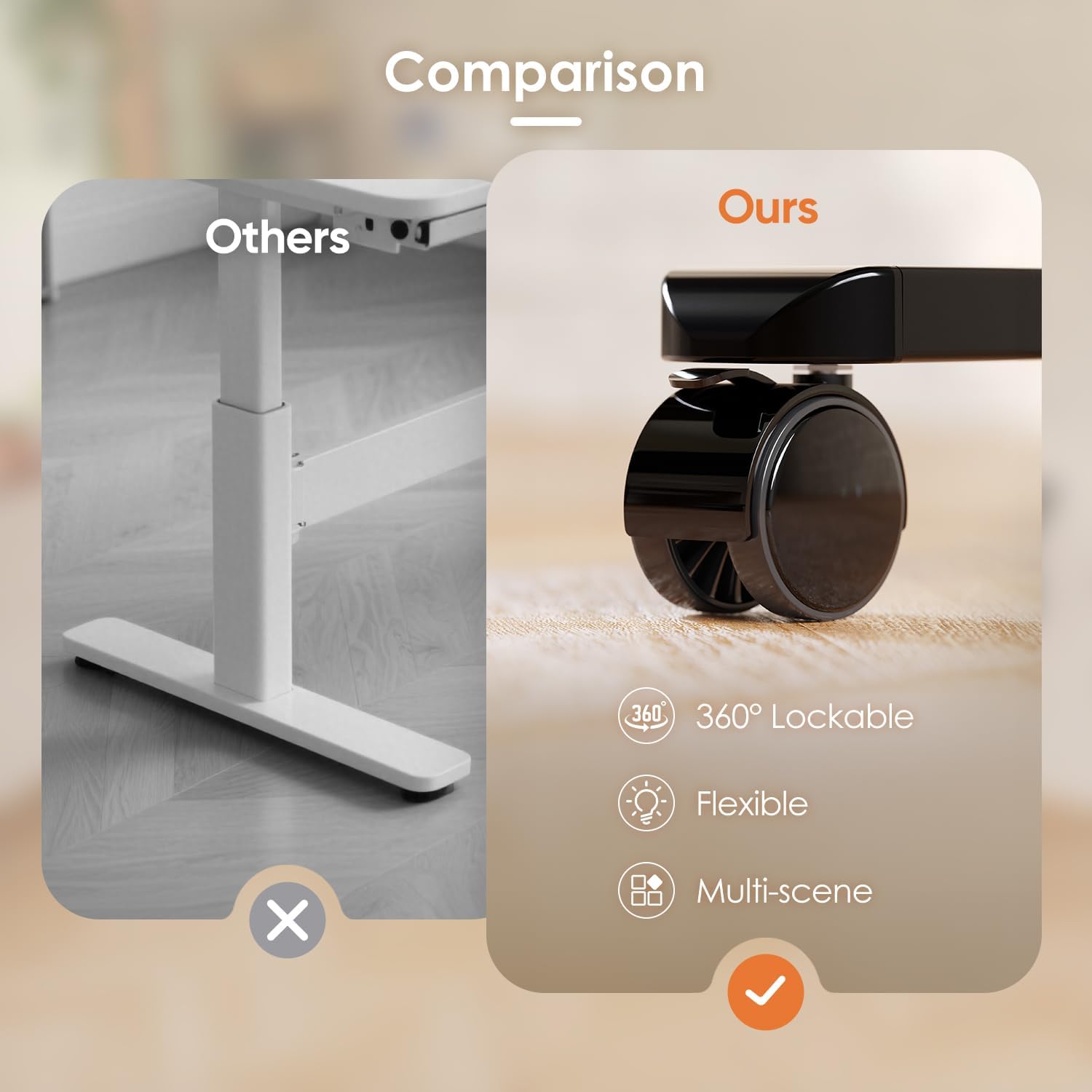 - 【Solid and Durable Sit Stand Desk】--This adjustable standing desk with a durable desktop allows for a 178 lbs weight capacity.Monomi stand up desk with 4 lockable wheels, which makes your office desk moves eaily.