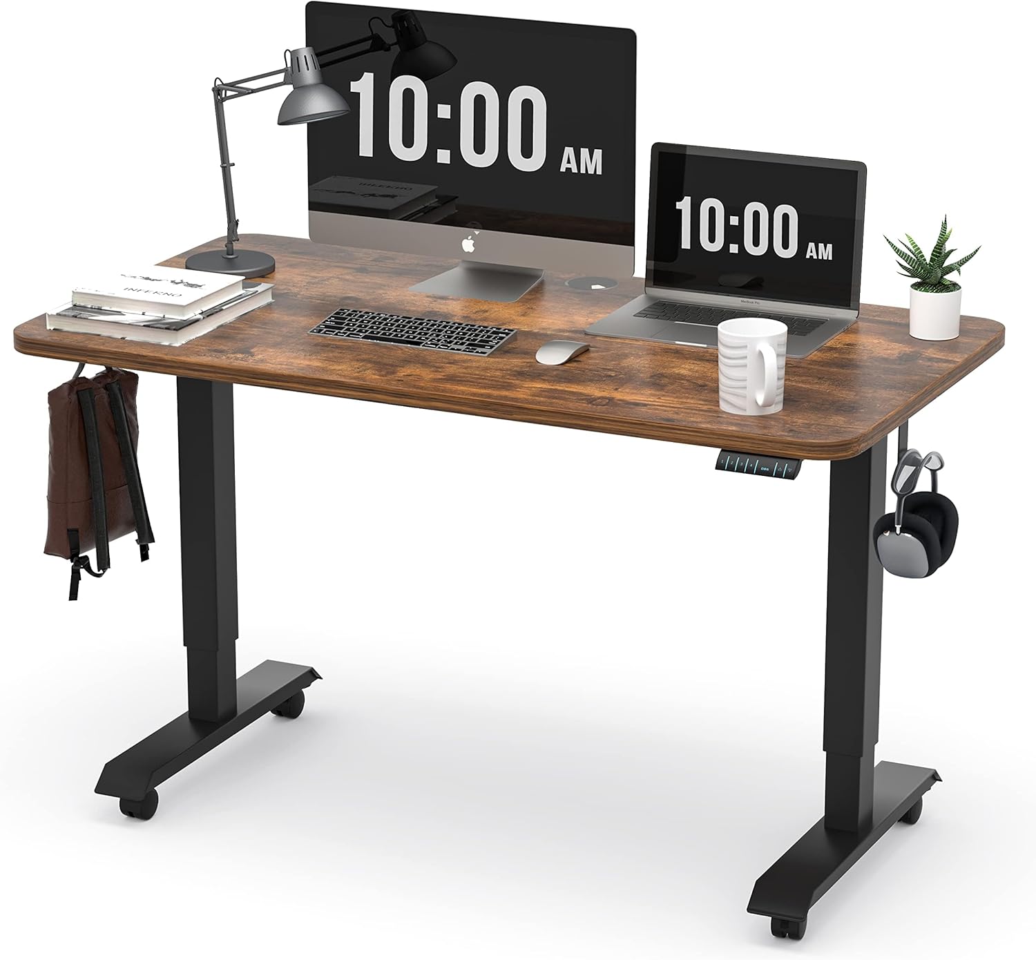 Monomi Electric Height Adjustable Standing Desk, 48x24 Inches Ergonomic Home Office Sit/Stand Up Desk (Black Steel Frame/Rustic Brown Top)