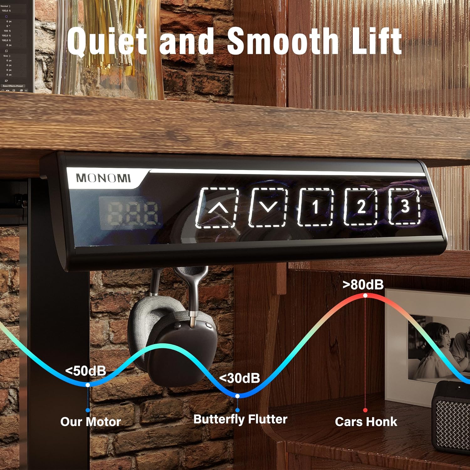 - 【Outstanding Stability】--This standing desk has a sturdy solid steel frame with aerospace-grade lifting column connectors. Even at full height, Monomi electric standing desk can eliminated any distractions from wobbling.The reliable motor operates quietly (under 45 dB).