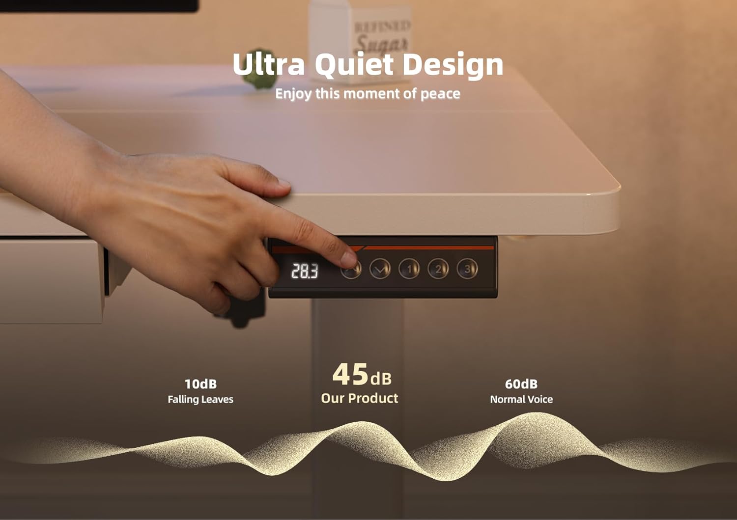 - Powerful Motor: Adjustable desk equipped with a powerful and durable motor, the height adjustable desk operates quietly while being energy-efficient. The noise level is about 45 decibels, providing you with a quiet working environment