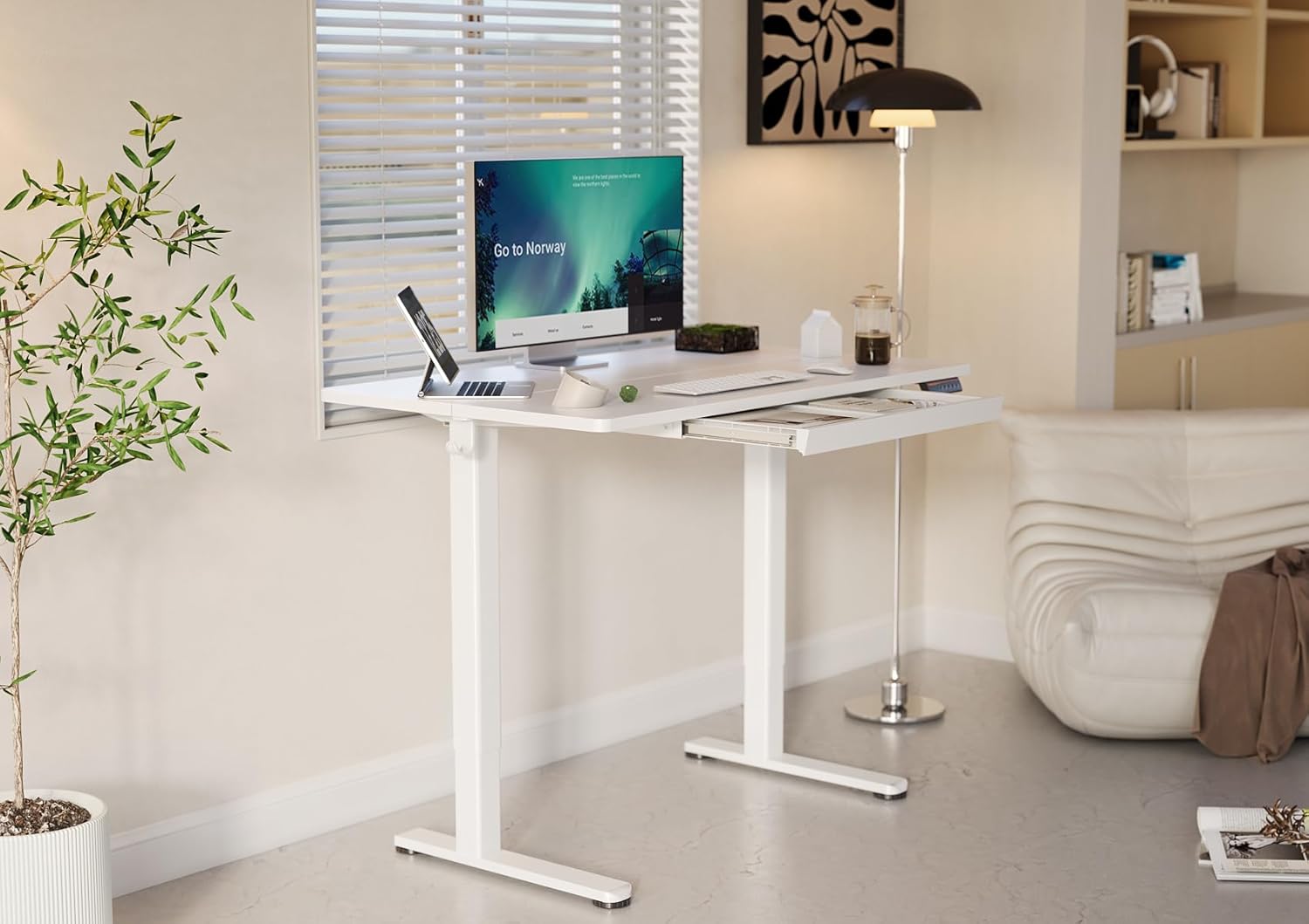 YDN Standing Desk with Drawers, 48 x 24 Inch Electric Adjustable Height Stand Up Desk, Sit Stand for Home Office, White