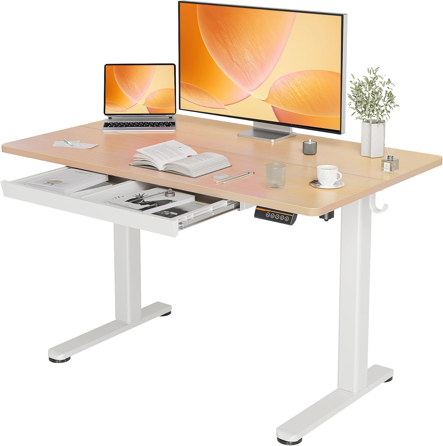 YDN Standing Desk with Drawers, Height Adjustable Desk 48 x 24 Inch, Electric Sit Stand Home Office, Natural