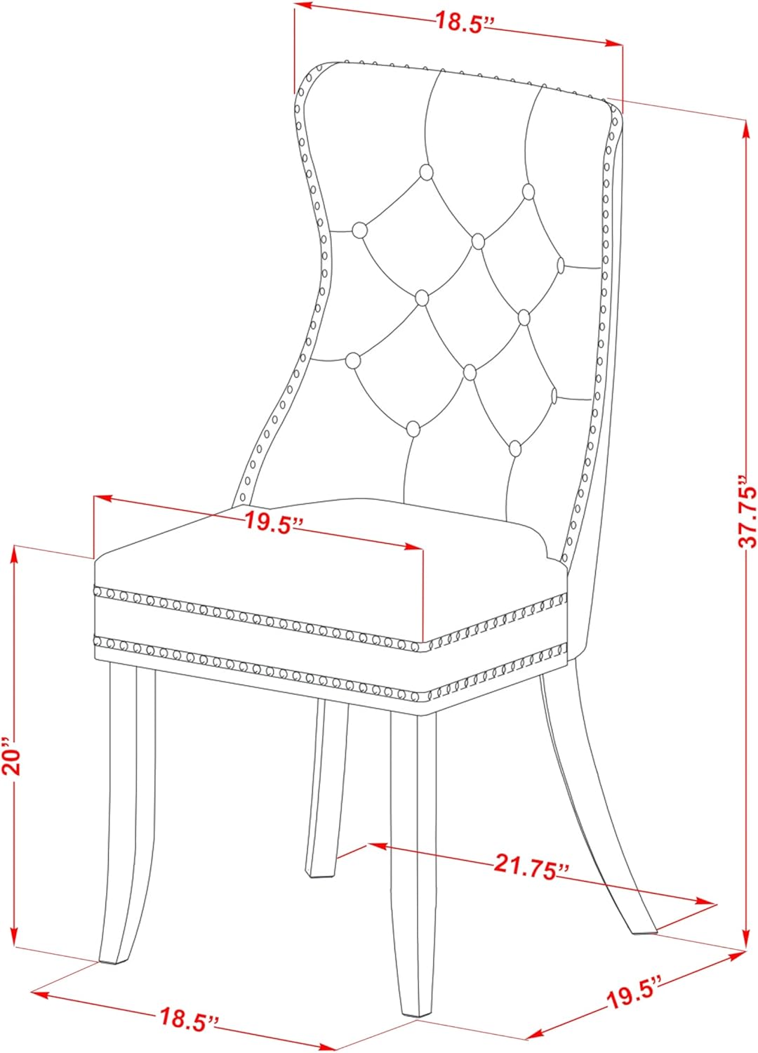 - ITEM DIMENSION: The kitchen table dimensions: Length: 36; Width: 36; Height: 29.5. The Dimension of The kitchen chair: Length 19.5; Width 24; Height 38.