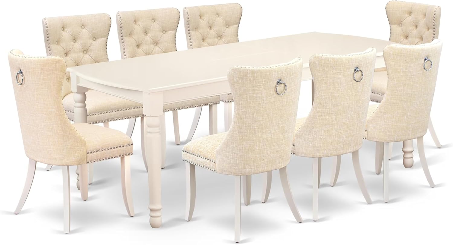 East West Furniture DODA9-LWH-32 9 Piece Kitchen Table Set Contains a Rectangle Dining Table with Butterfly Leaf and 8 Polyester Fabric Upholstered Chairs, 42x78 Inch, linen white