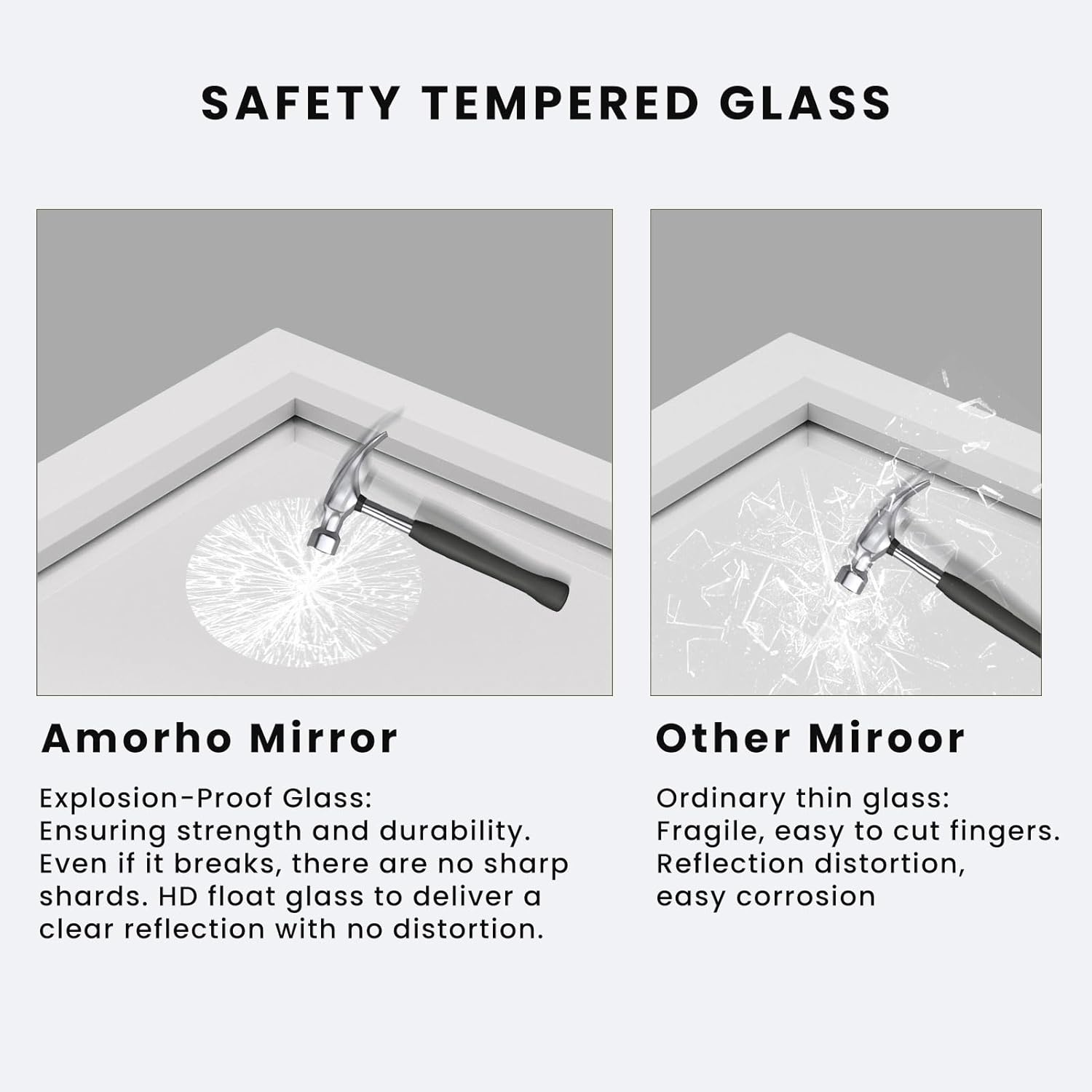 - [High-quality Materials]: Amorho bathroom mirror is made of explosion-proof premium glass, which is safe and durable; High-definition reflective and distortion-resistant
