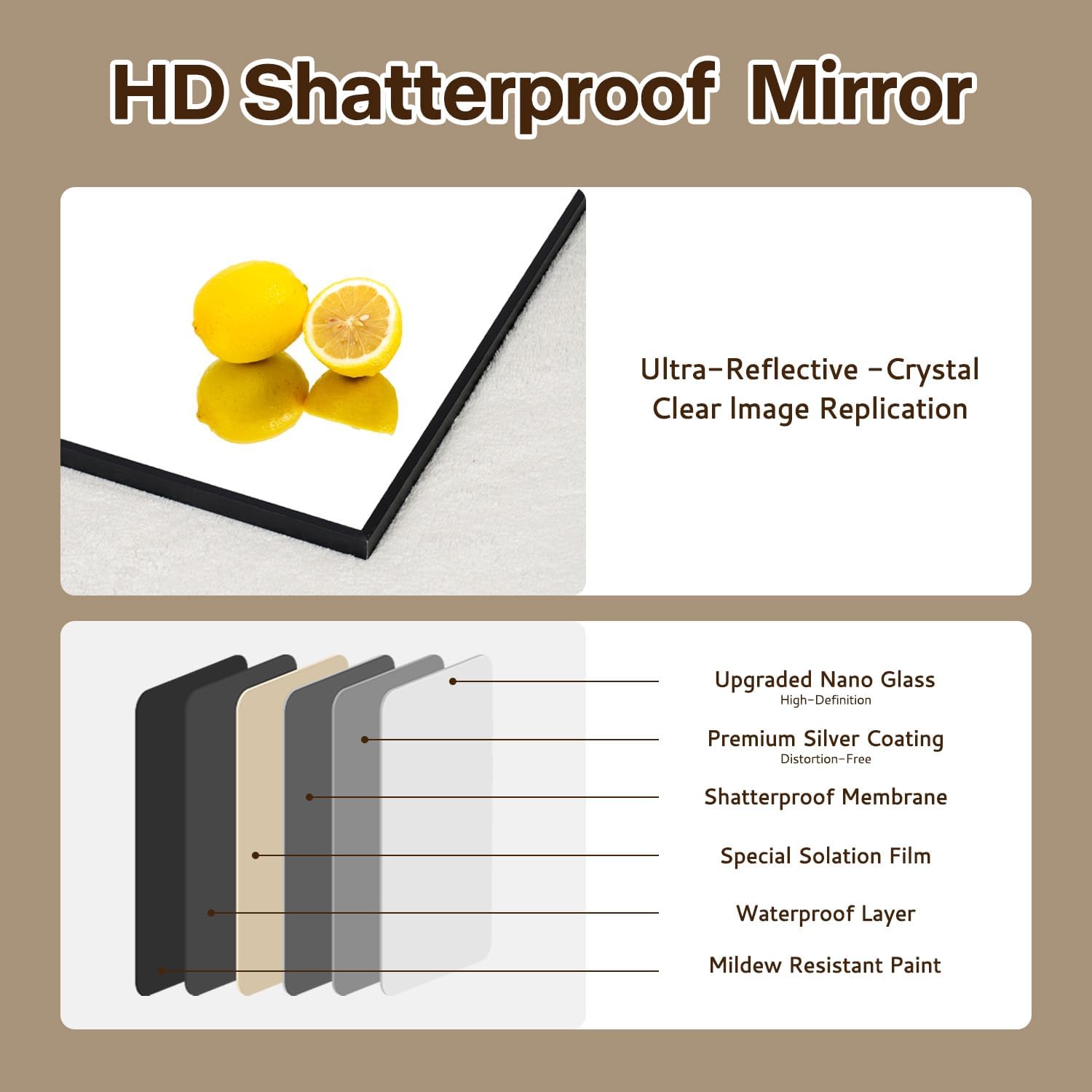 - 💎Shatterproof HD MIRROR: Bathroom top arch mirror with premium 6-layer shatterproof float glass provides a clear, undistorted reflection to the wall mounted arched mirror. The back is covered with explosion-proof film to prevent splashes when broken by external force.