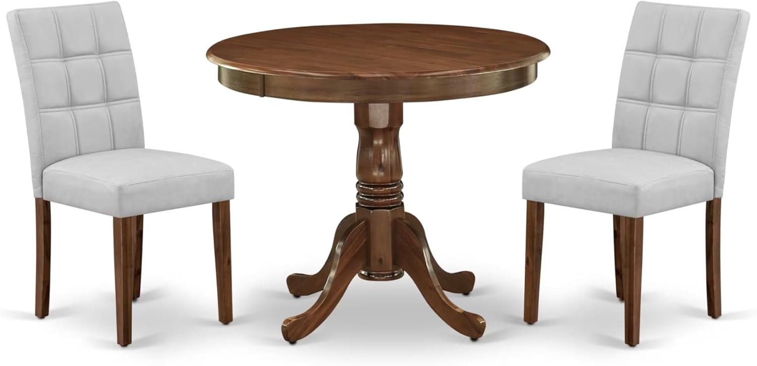 East West Furniture ANAS3-AWA-27 3 Piece Modern Dining Set consists A Dinning Table and 2 Light Gray Polyester Fabric Dinner Chairs, Antique Walnut
