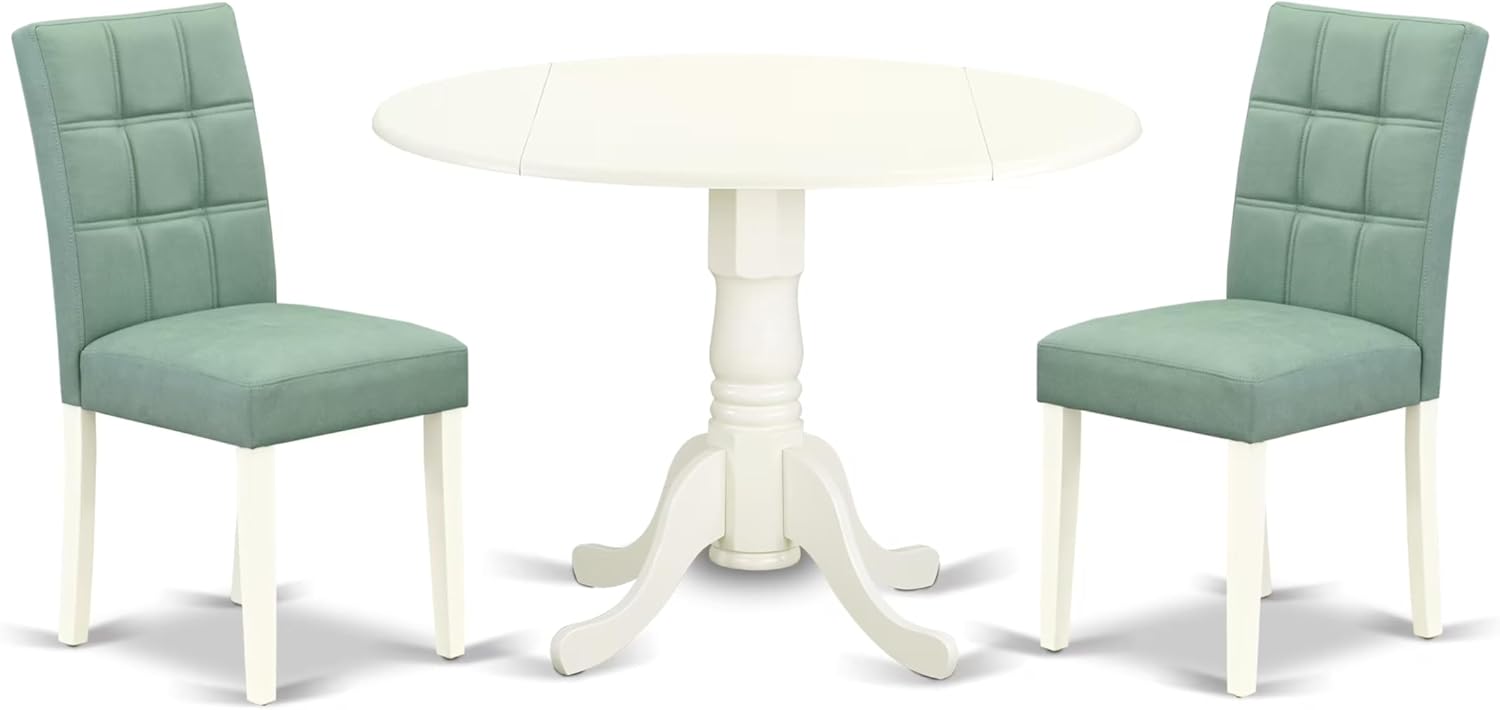 East West Furniture DLAS3-WHI-43 3 Piece Modern Dining Set contain A Wood Dining Table and 2 Willow Green Polyester Fabric Mid Century Chairs, Linen White
