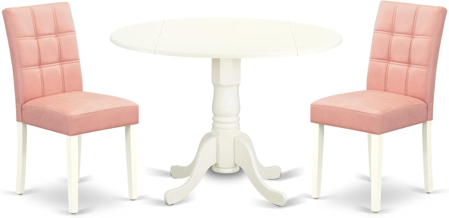 - MODERN DINING TABLE SET: This stylish 3-piece dining set with a modern mid-century aestheticelevates The visual appeal of your dining area. ItIncludes a beautifully crafted round dining table and a drop-leaf tabletop with a pedestal base, along with 2 cozy upholstered dining chairs. Ideal for hosting family gatherings, This dining set brings a sense of elegance to any dining room, thanks to its chic design and ornamental elements.