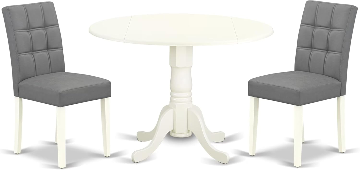 East West Furniture DLAS3-WHI-41 3 Piece Dining Table Set consists A Wooden Table and 2 Platinum Gray Polyester Fabric Kitchen Chairs with Stylish Back- Linen White Finish