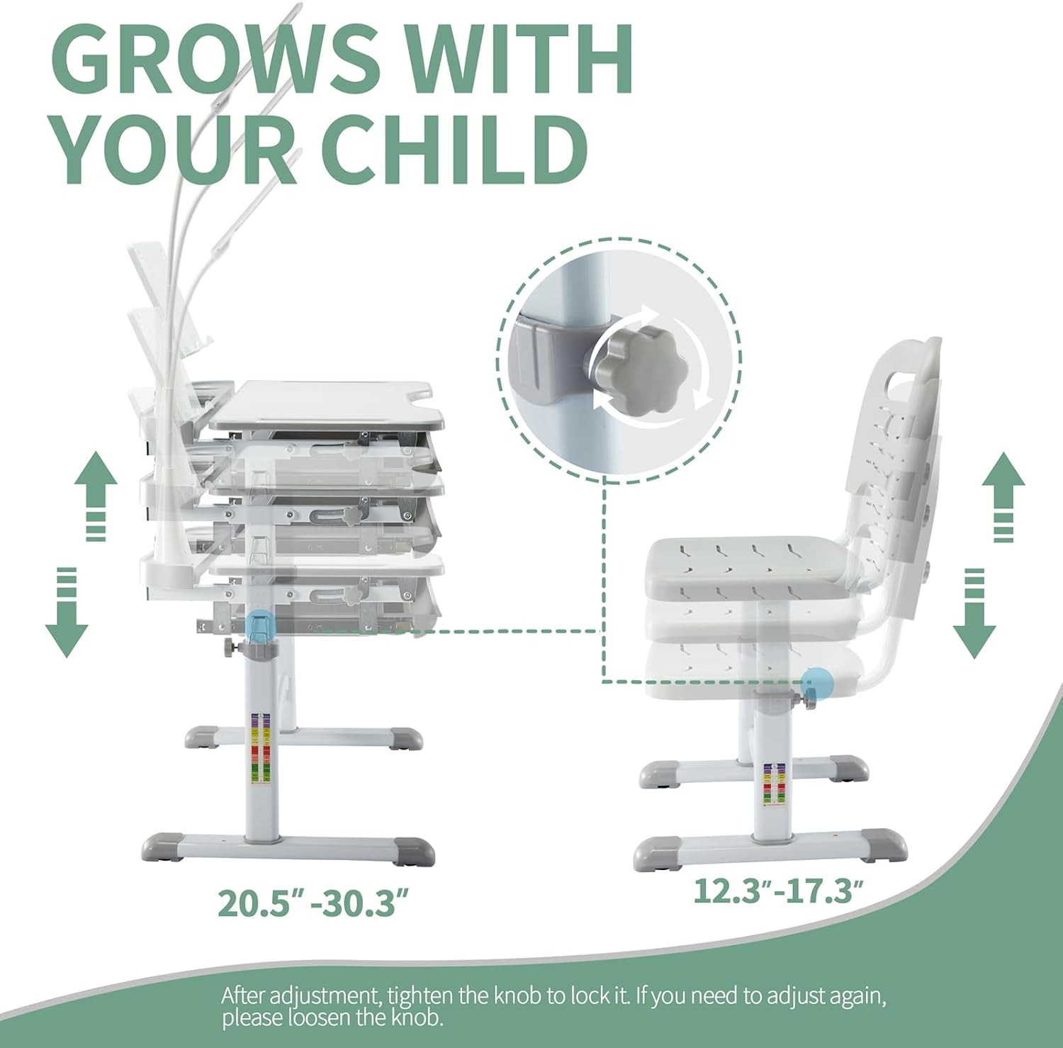 - 【Designed for Growing Minds】Our study tables are adjustable and ergonomic,you can easily adjust height of table and chair according to the height of the child, accompanied with children growth for long-term use. Kid study chair is perfact for children at age 7-12 Years.