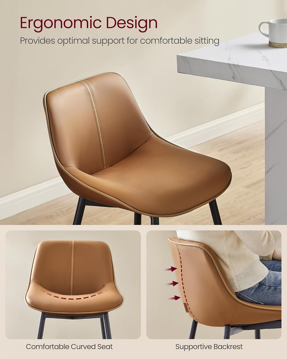 VASAGLE Bar Stools Set of 2, Bar Height Bar Stools with Back, Ergonomic Backrest, Synthetic Leather, Metal Legs, 28.7-Inch Tall Barstools for Kitchen Island Home Bar, Easy Assembly, Caramel Brown
