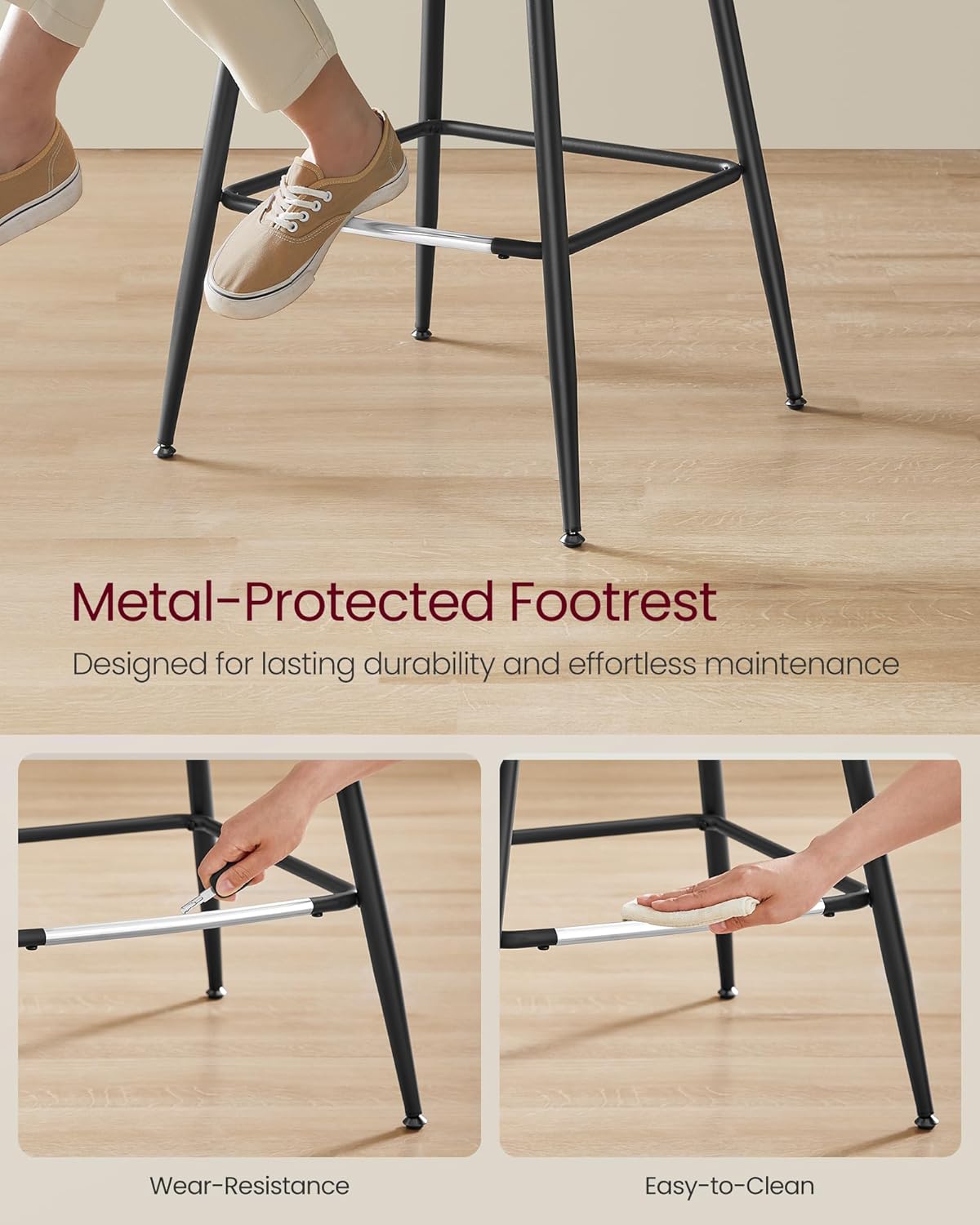 - [Durable Footrest with Metal Protection] Each of these breakfast stools features a metal-protected footrest, designed for durability and ease of cleaning, even when stepped on with shoes