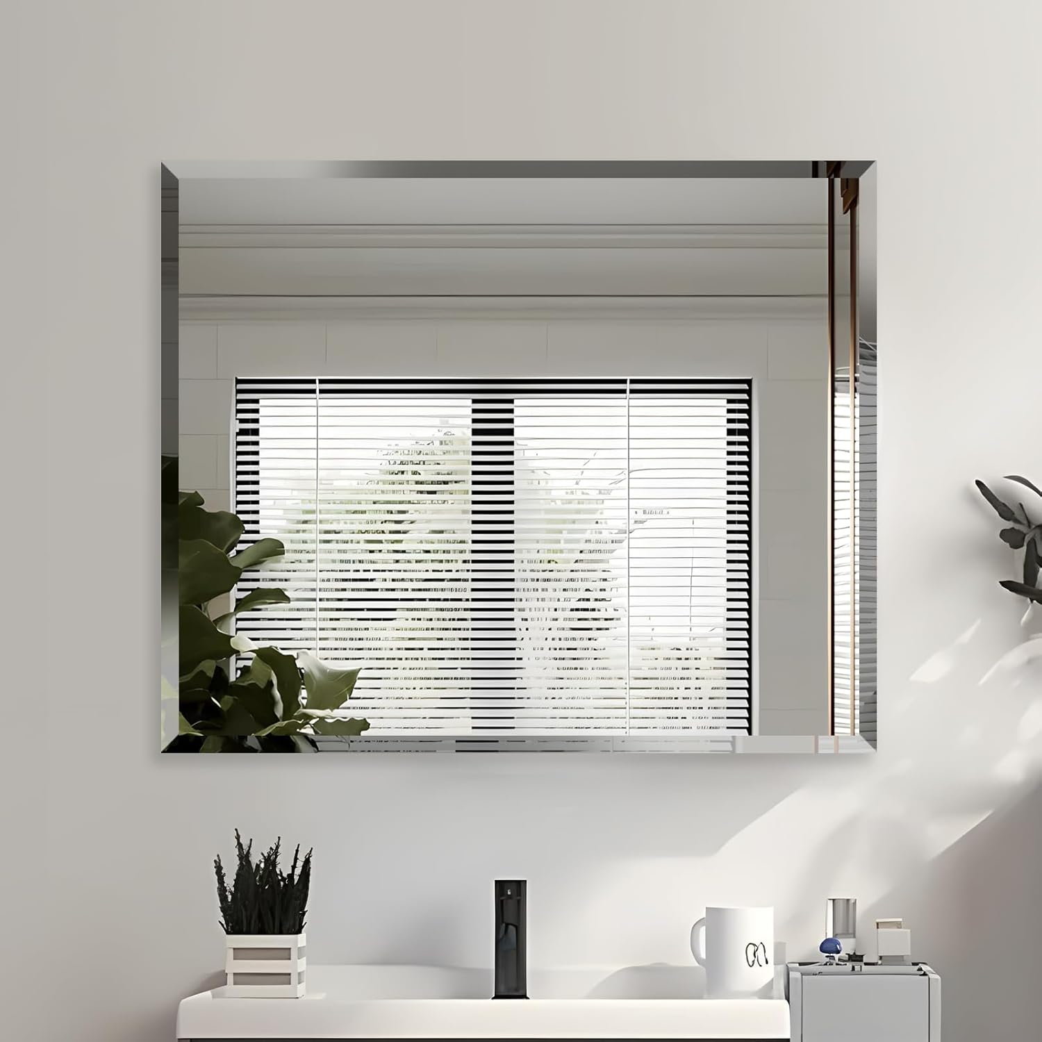 - 【 Frameless HD Mirror 】The Rectangle Mirrors for bathroom with beveled edge features float glass, realistic reflection, corrosion resistance, a premium silver back that is waterproof and moisture-resistant, and a classic mirror-frameless beveled edge suitable for any bathroom or as a living room wall display.