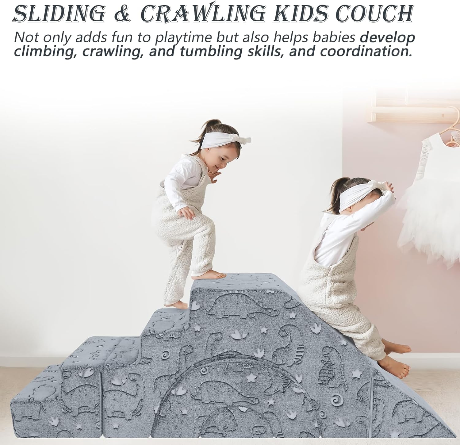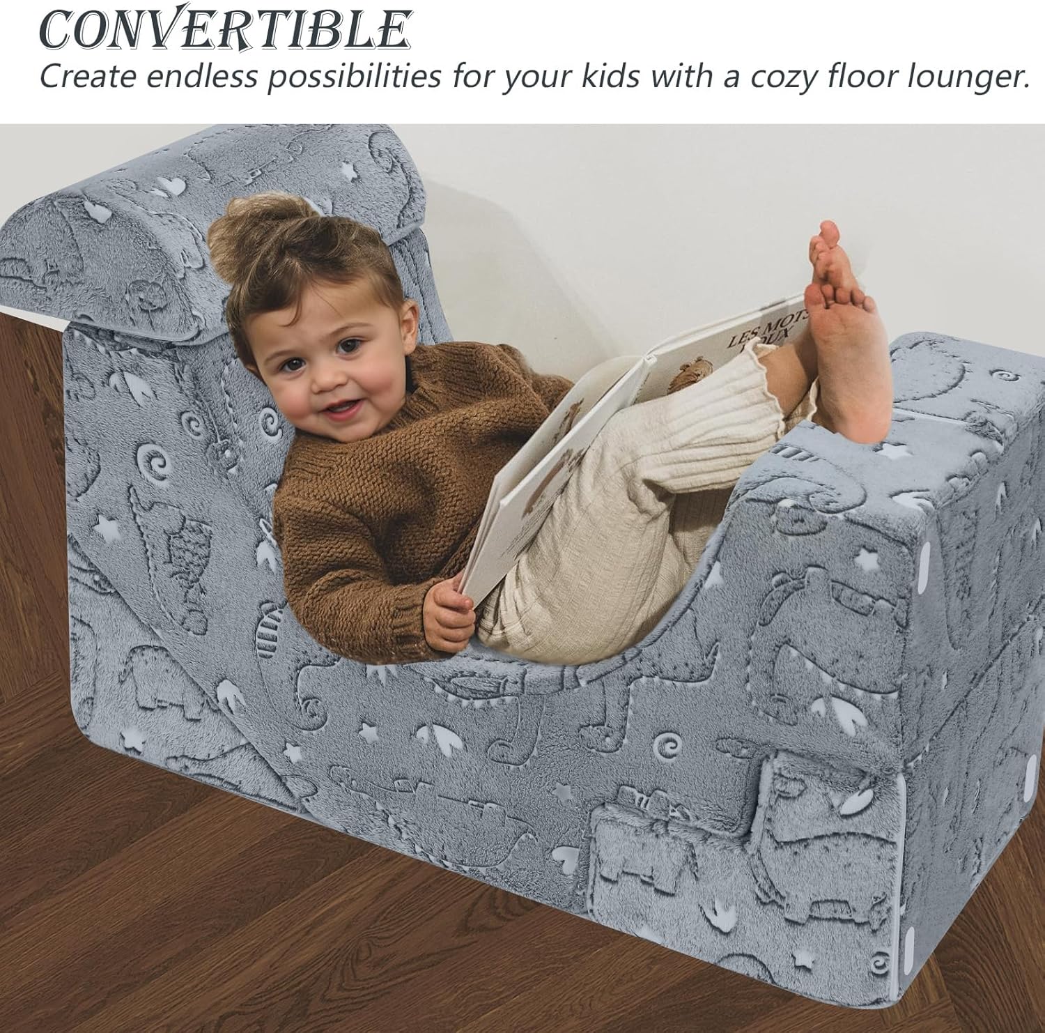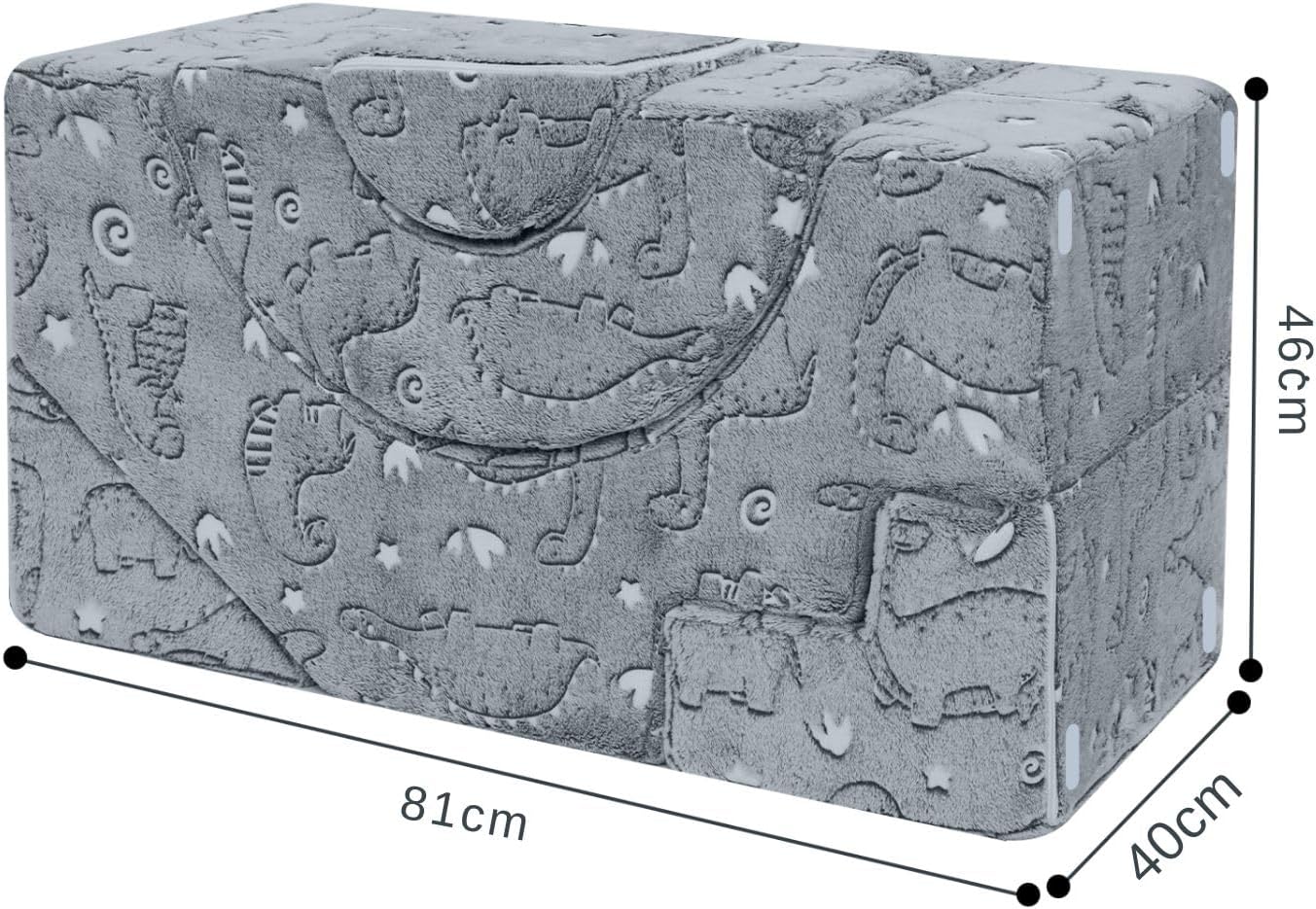 - Glowing Baby Couch: Make the magical night with baby crawl couch! Dinosaurs come to life in the dark. Place the kids convertible sofa under a bright light. This play couch sofa is an ideal gift for birthdays, Christmas, and baby showers