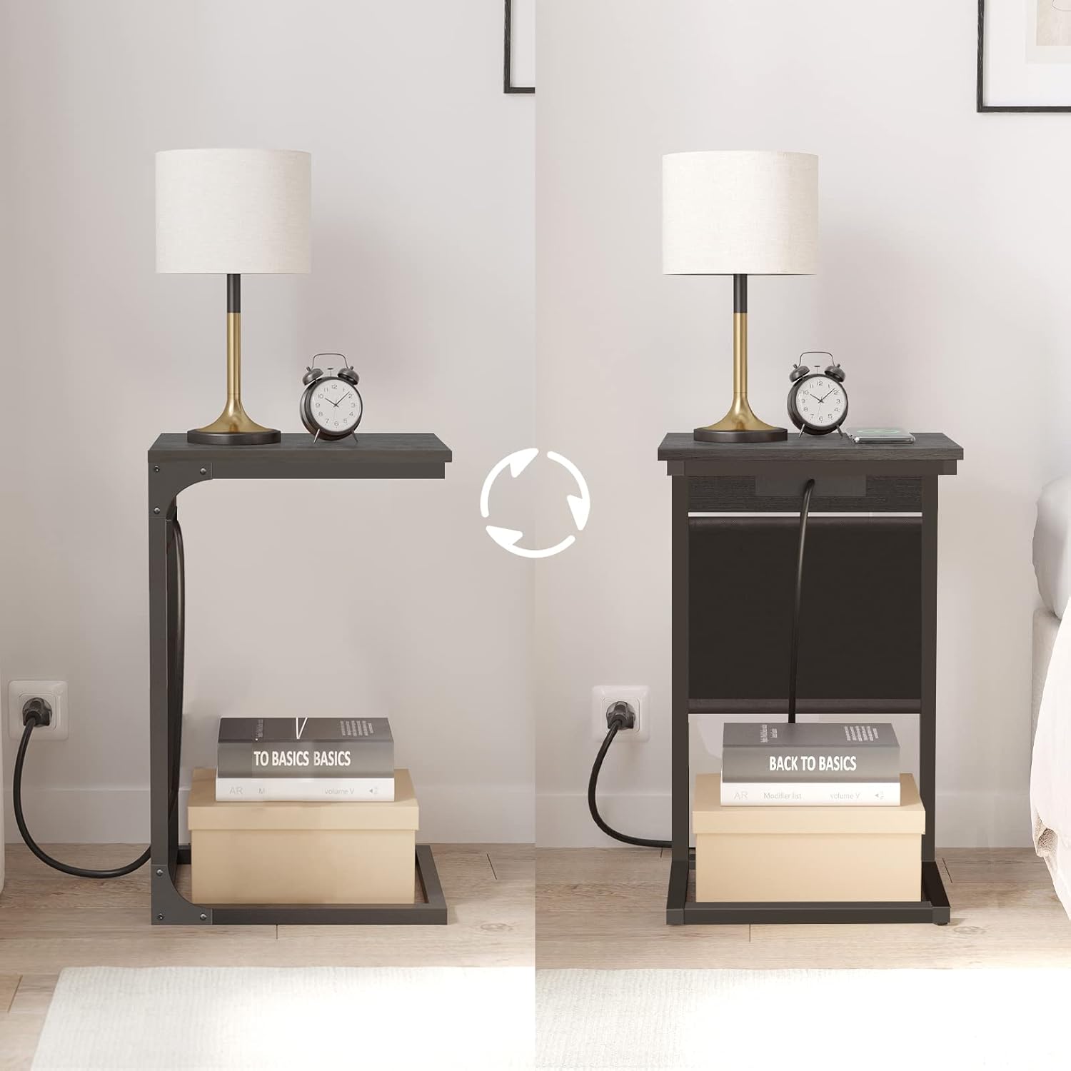 TUTOTAK C Shaped End Table with Charging Station, Side Table for Sofa, Couch Table with Storage Bag, Set of 2, TV Tray Table with 2 USB Ports and Outlets for Living Room, Bedroom, Black TB01BK0242