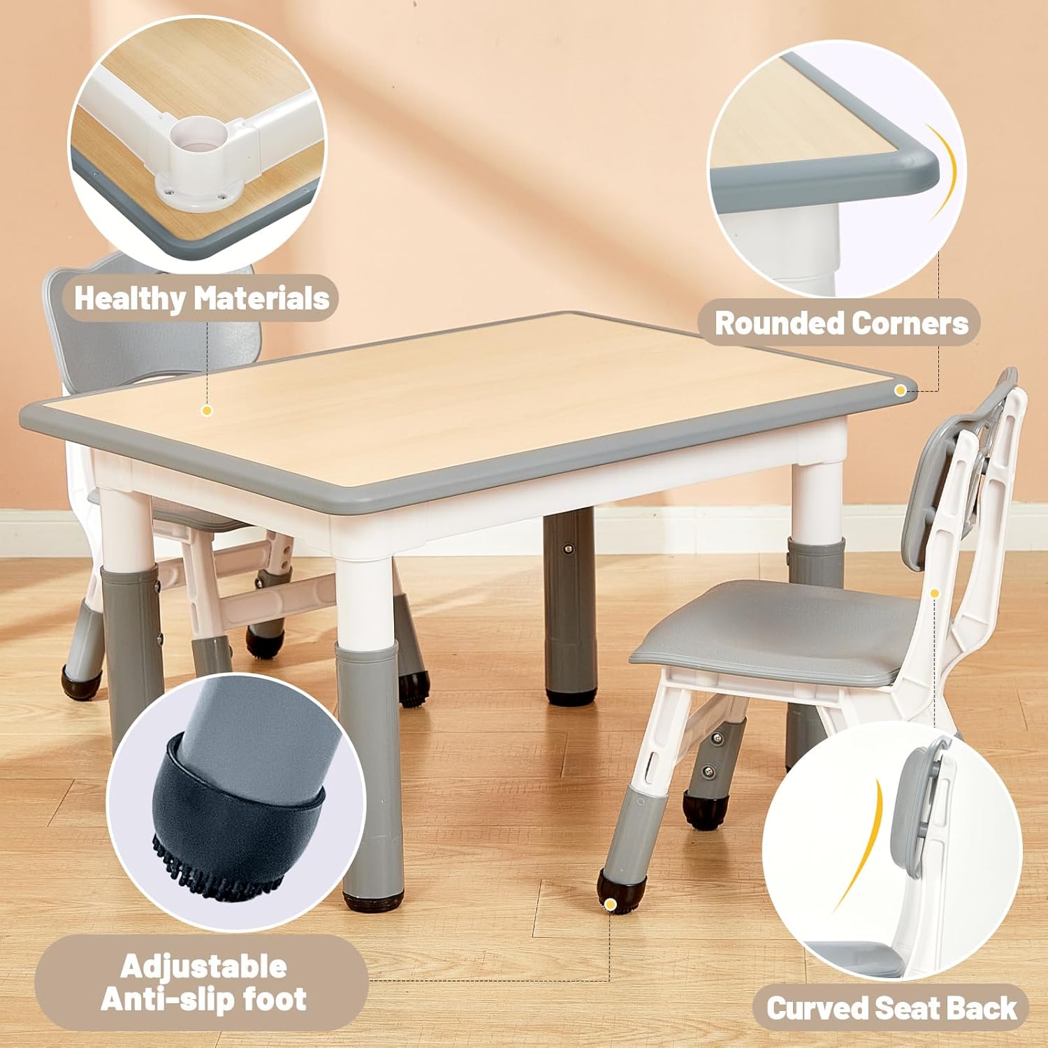FUNLIO Kids Table and 2 Chairs Set for Ages 3-8, Height Adjustable Toddler Table and Chair Set, Easy to Wipe Arts & Crafts Table, for Classrooms/Daycares/Homes, CPC & CE Approved (3pcs Set) - Gray