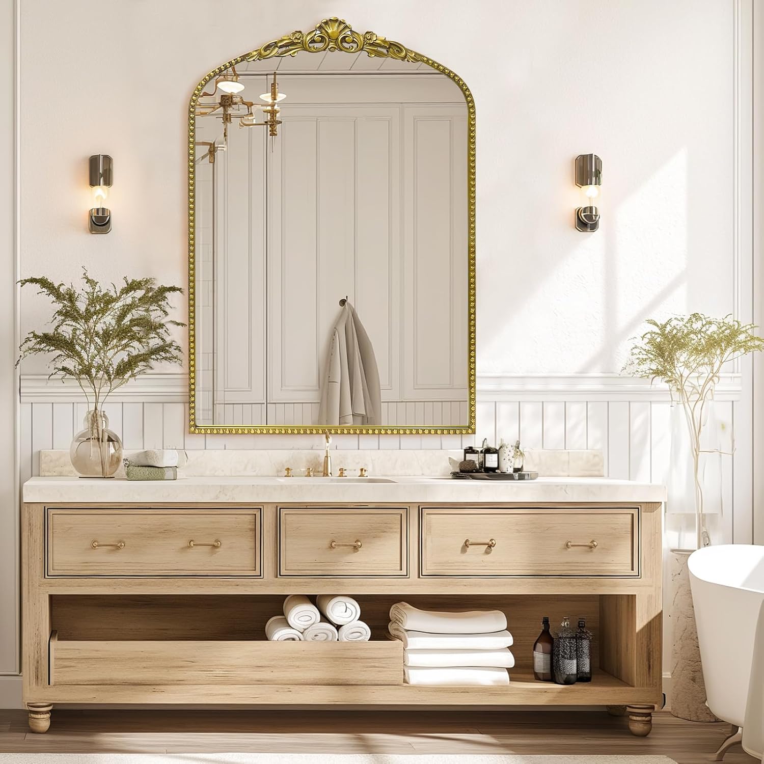 - Barque Style- Its ornate design, antique gold finish, and impeccable craftsmanship make it the perfect addition to any room. A statement piece that combines antique elegance with modern style. French country mirror will suitable for fireplace, bathroom, entryway, living room, bedroom, powder room, hall,and more.