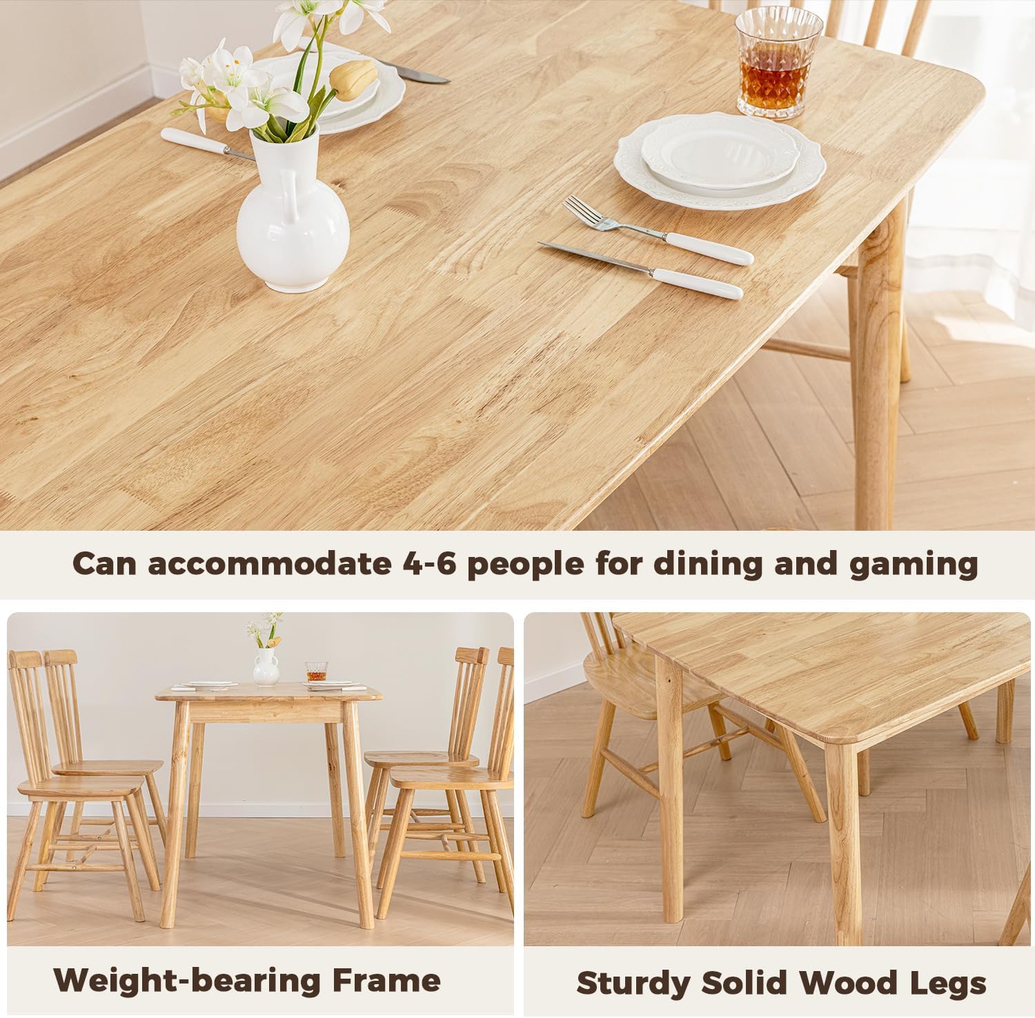 - Sturdy and Reliable: This 100% solid wood dining table is carefully selected from premium rubber wood, which makes it an ideal choice for daily use due to its excellent strength and durability. With a solid wood tabletop and 4 hardwood legs, the smooth surface of the tabletop makes it easier to clean and will not be easily scratched or dented.