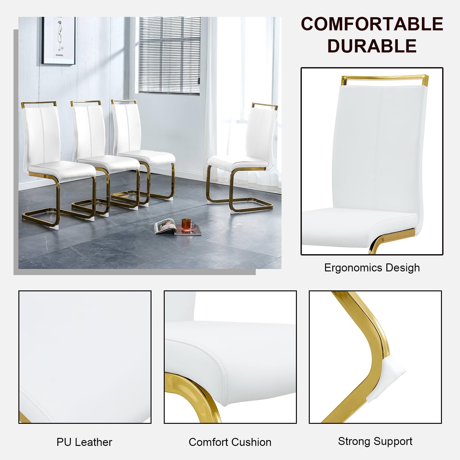 Modern Dining Chairs Set of 4,High Back White Kitchen Chairs,Faux Leather Side Chair with Gold Plated Metal Legs,Easy to Clean Upholstered Dining Chairs,Ideal for Living Room(Gold Leg)