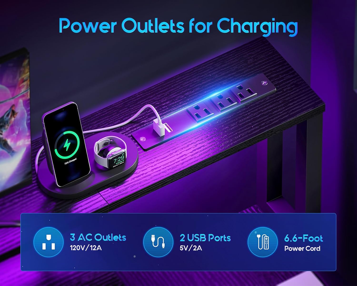 - 【USB Ports & Power Outlets】Our home office desk features an integrated power center with 3 AC outlets and 2 USB ports, enabling fast charging for your smartphones, tablets, or gaming devices. Keep cables tidy and your workspace clutter-free—effortless power, zero distractions