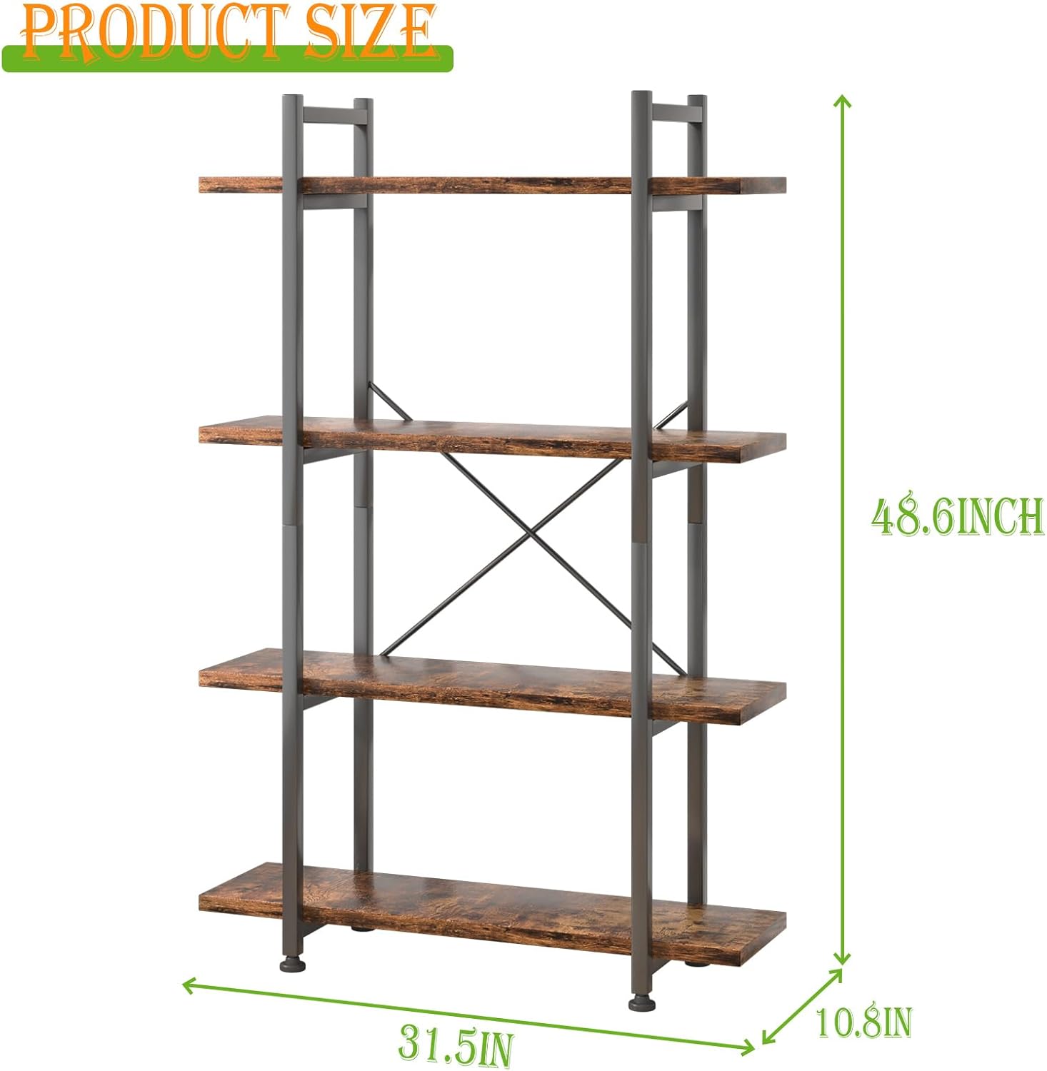 - ✔LARGE CAPACITY The size of this 4 shelf bookcase is 31.5 * 10.8 * 48.4 inches. The height of each shelf is approximately 13 inches. Each shelf can hold 75 pounds. You can store your essentials and decorations with confidence, without worrying about the partition being crushed or toppled.