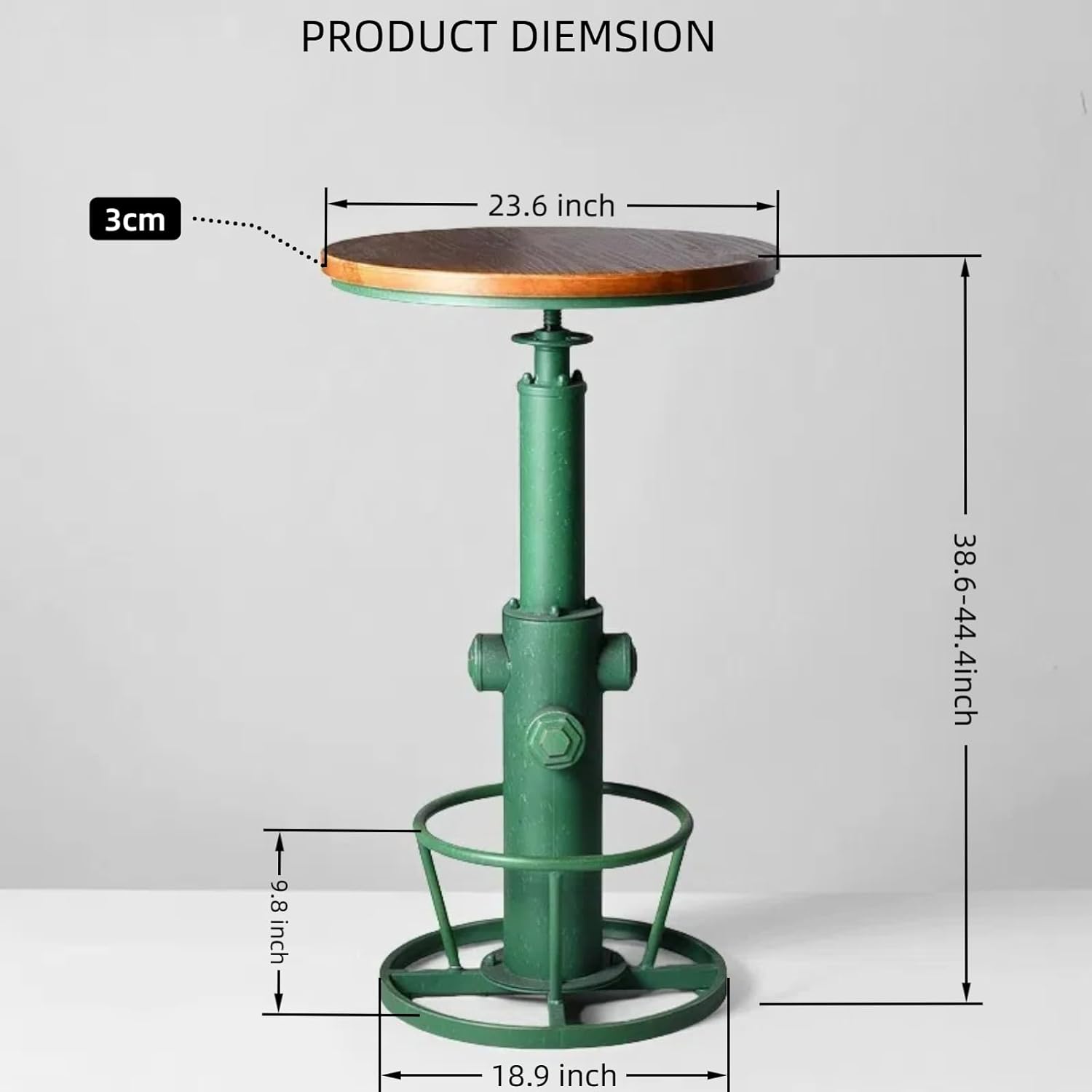 - Industrial Stylish-Antique Green steel body, and a sturdy, solid standing base reflects the design aesthetics of industrial machinery;Brown wooden tablet op with natural wood grain, bringing a strong feeling of vintage style. This table is perfect for home use, as well as bar, coffee shop, or restaurant usage with its stylish design and durability it can easily fit into any decor and last for years to come.