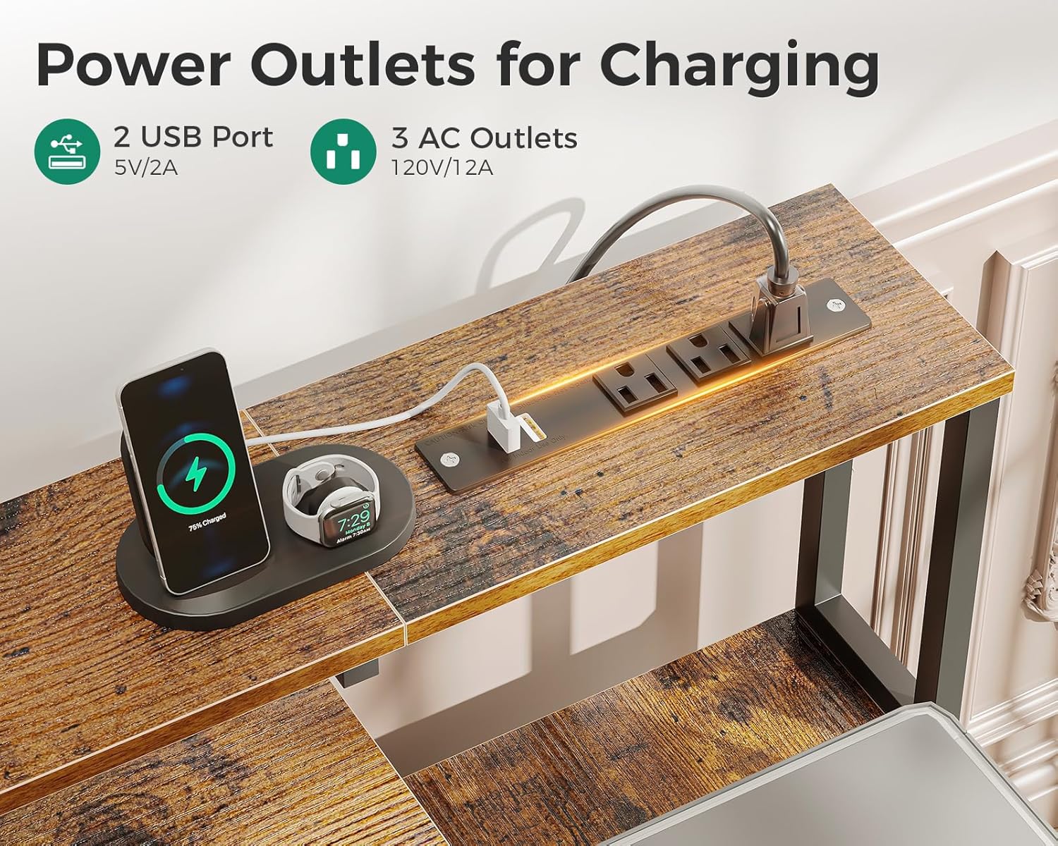 - 【USB Ports & Power Outlets】Our home office desk features an integrated power center with 3 AC outlets and 2 USB ports, enabling fast charging for your smartphones, tablets, or gaming devices. Keep cables tidy and your workspace clutter-free—effortless power, zero distractions