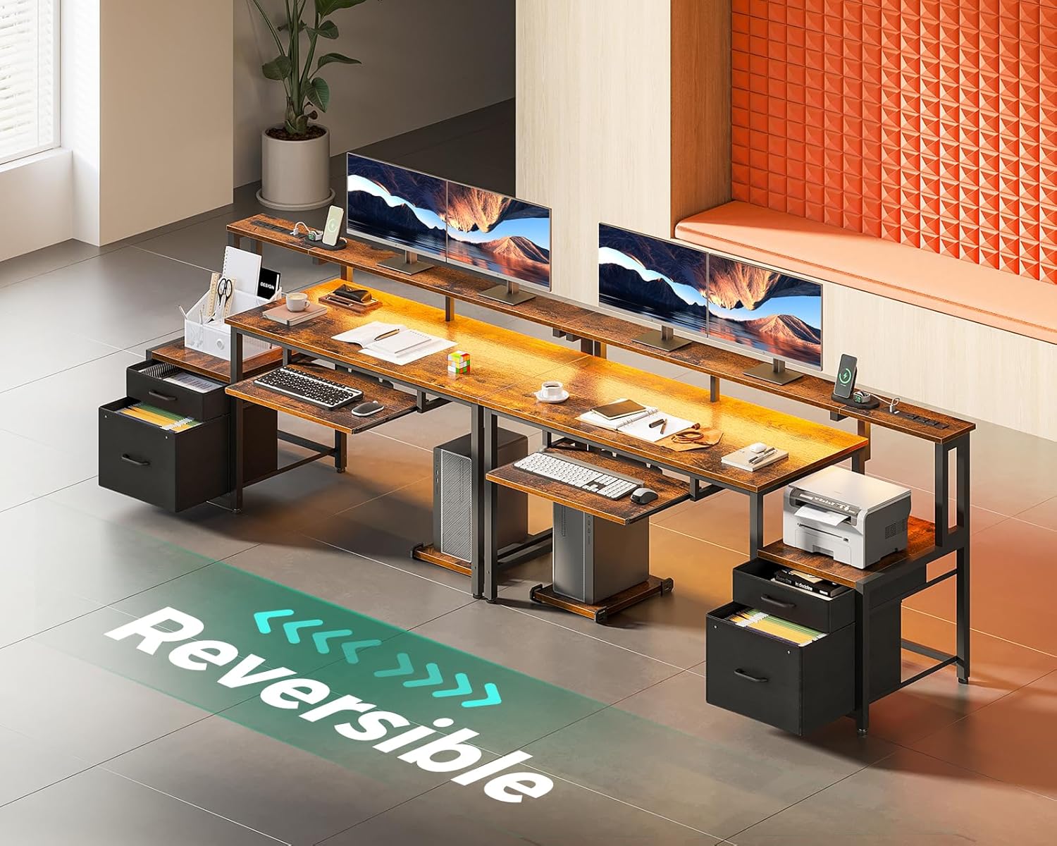 - 【Fabric File Cabinet and Printer Shelf】This desk features a fabric file cabinet (fits letter/A4/legal files) and a fabric drawer. The drawers are ready to use, easy to clean, and offer private storage. The side shelf fits most printers or can hold office supplies, keeping them within easy reach of your desk