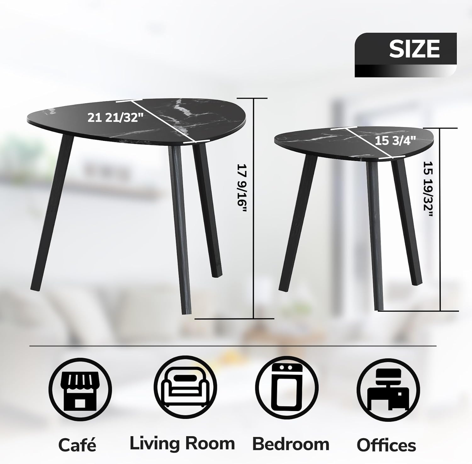 BAMEOS Bamboo Nesting Triangle End Table,Set of 2 Coffee Table Modern Minimalist Side Table for Living Room (Marble Black)