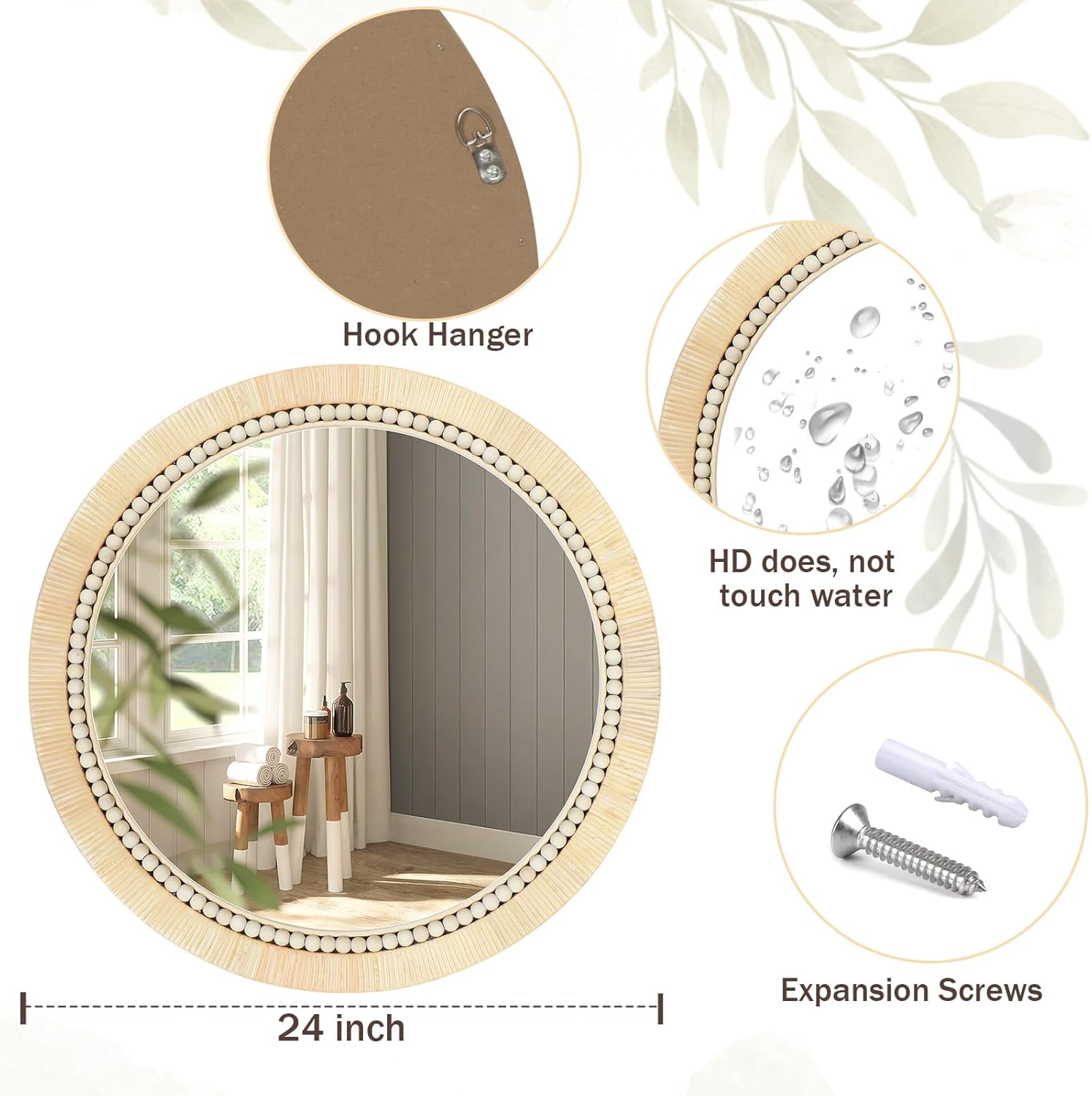 - Service: Adopting all-around protection to ensure the smoothness in the transportation process. If the rattan-woven round mirror is broken or deformed when you receive it, contact us in time, We will provide you with satisfactory after-sales service
