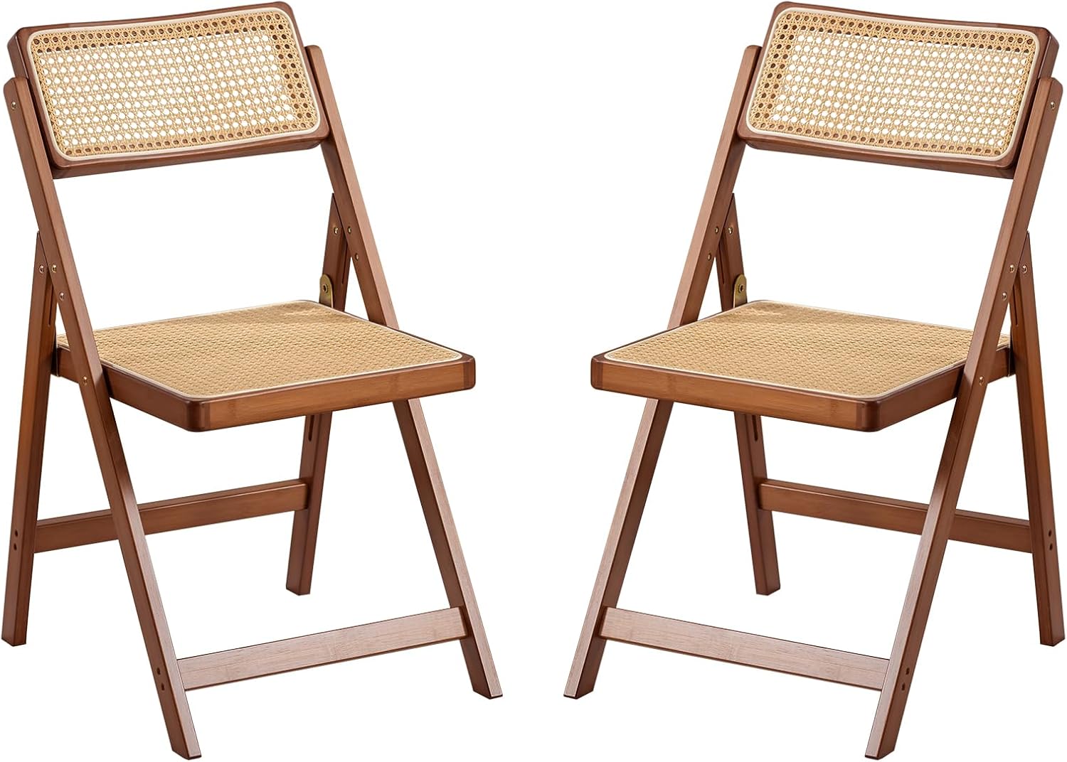 Rattan Folding Chairs, Modern Mid Century Dining Chairs Set of 2, Outdoor Bamboo Chairs for Bedroom Living Room Reading Room Dining Kitchen, Walnut