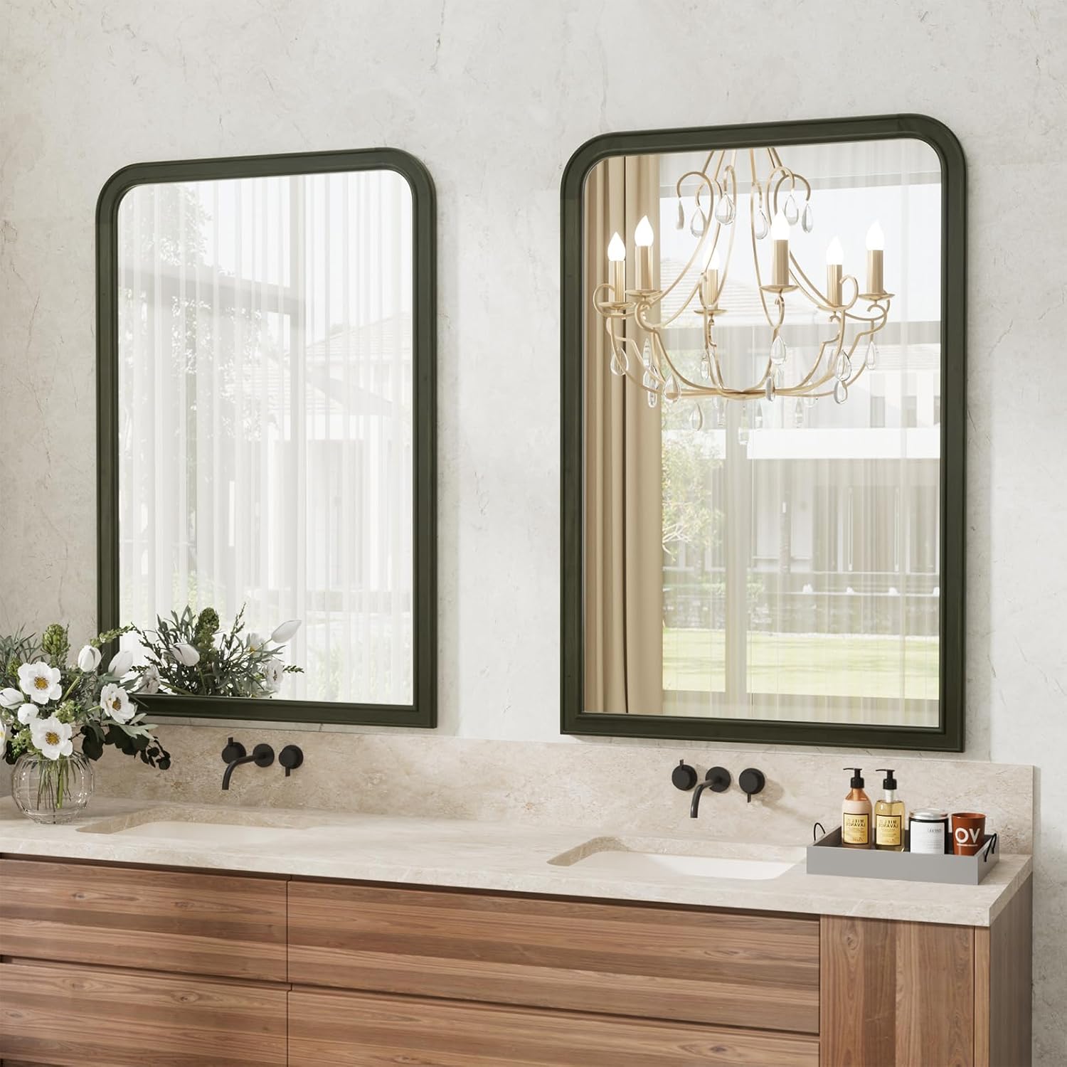 WallBeyond Wood Frame Bathroom Mirror 24" x 36" Wooden Arched Wall Mirror Farmhouse Style Bathroom Vanity Mirror for Home Decor Rectangle Mirror (Black)