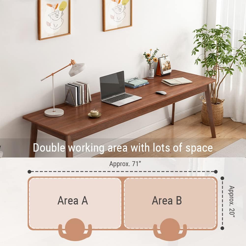 Mid-Century Long Desk Table - 71" Simple Modern Extra Long 2-Person Wood Computer Workstation for Home Office Work in Walnut, 71" W x 20" D
