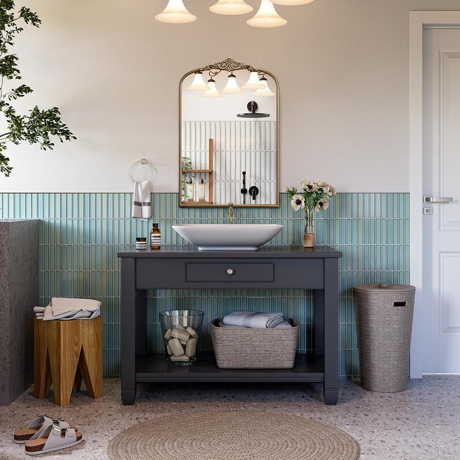 Arched Antique Wall Mirror, 22"x30" Vintage Gold Bathroom Vanity Mirror, Ornate Arch Bronze Mirror for Over Sink/Fireplace/Entryway
