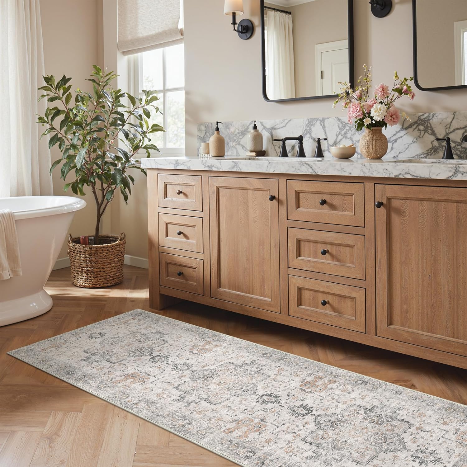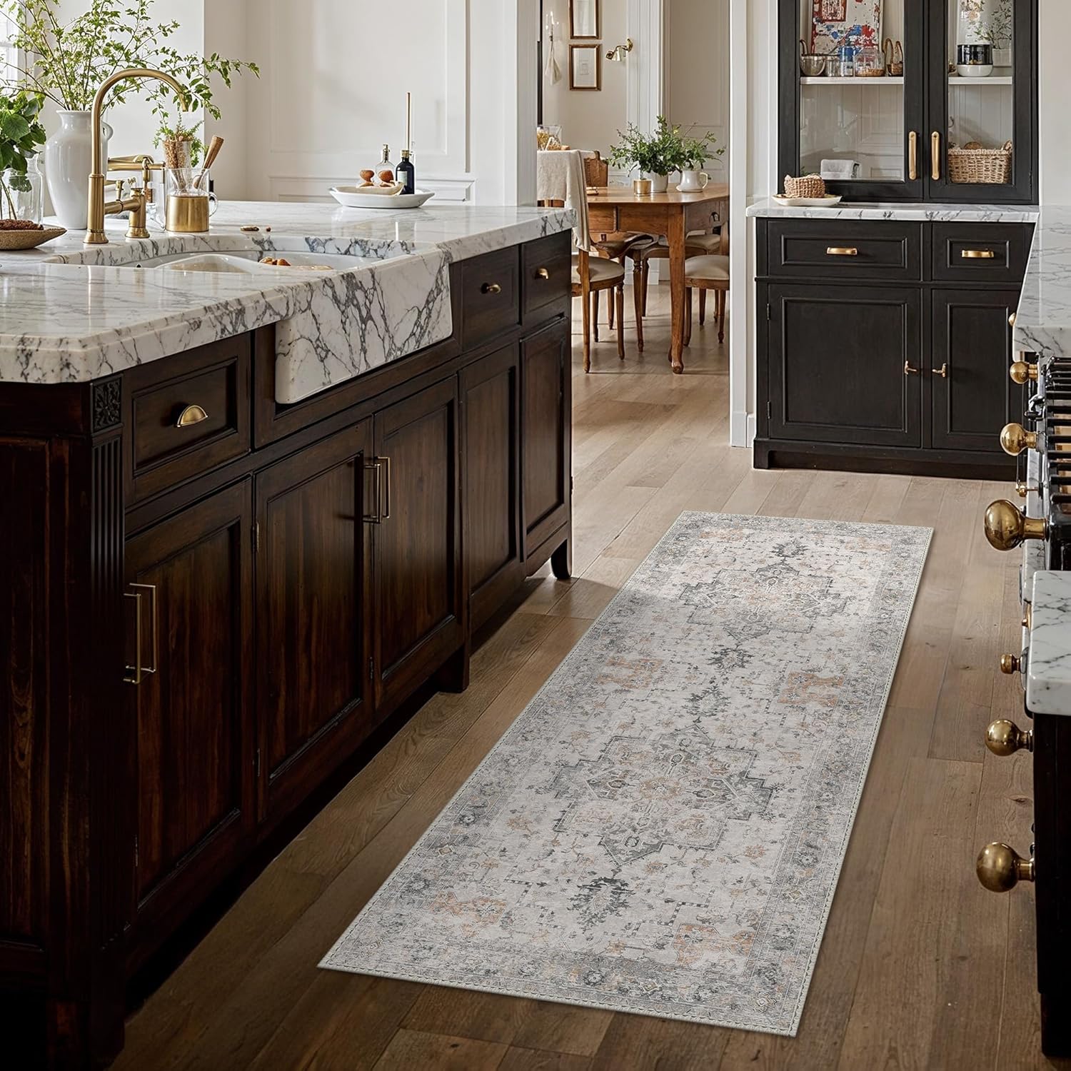 GENIMO Runner Rug 2x6 Non Slip Machine Washable Vintage Hallway Runner Rug, Low PileLightweight Rugs for Entryway, Hallway, Kitchen and Corridor, Light Taupe Brown