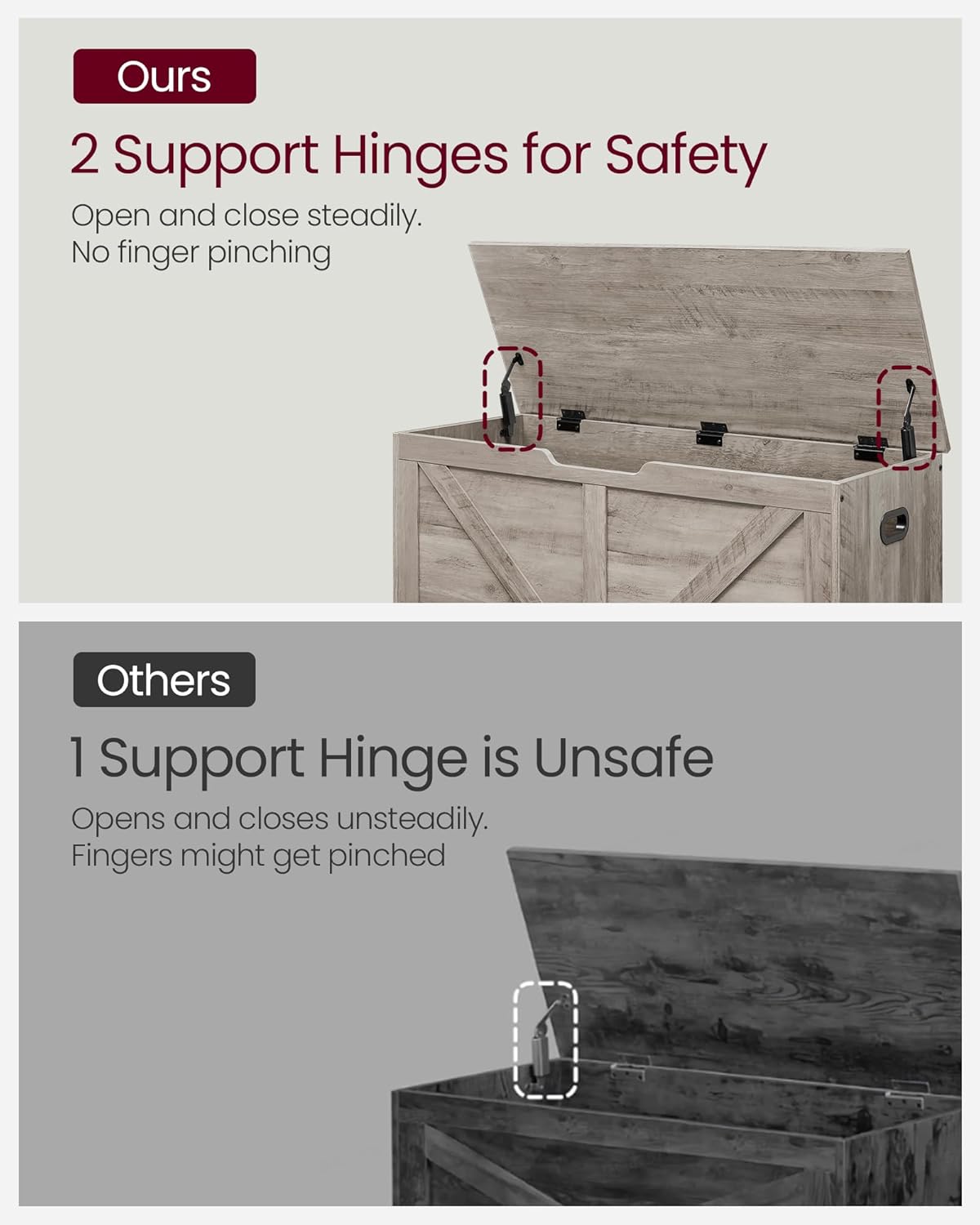 VASAGLE Storage Chest, Storage Trunk with 2 Safety Hinges, Storage Bench, Shoe Bench, Farmhouse Style, 15.7 x 39.4 x 18.1 Inches, for Entryway, Bedroom, Living Room, Heather Greige ULSB060K03