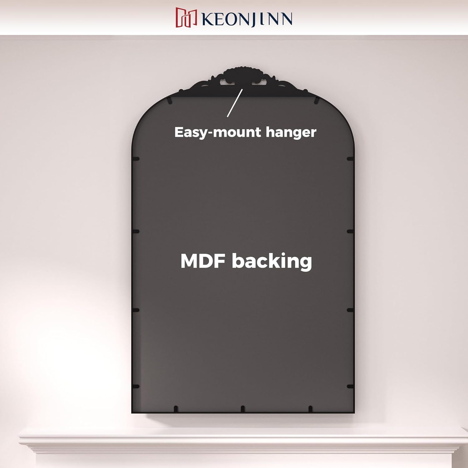 - 【Baroque-inspired Charm】 Keonjinn Black Vintage Mirror is a timeless piece designed to elevate your wall décor. Inspired by the opulence of the Baroque era, this mirror exudes historical charm with its graceful arched design and intricate wooden floral crown, creating a captivating focal point in any room.