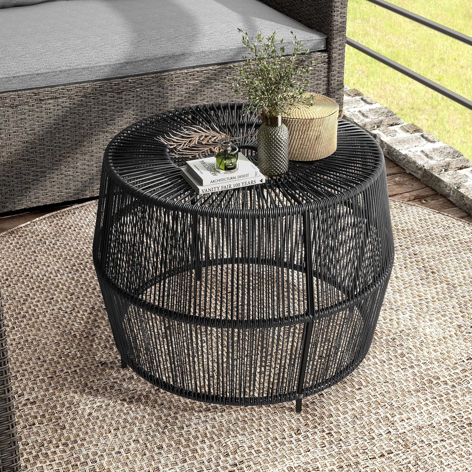 Muse & Lounge Co. Ysar Boho Rattan Round Coffee Table Outdoor with Metal Frame, All-Weather and Rust Resistant, Handcrafted Coastal Furniture for Patio, Poolside, Garden, Yard, Black