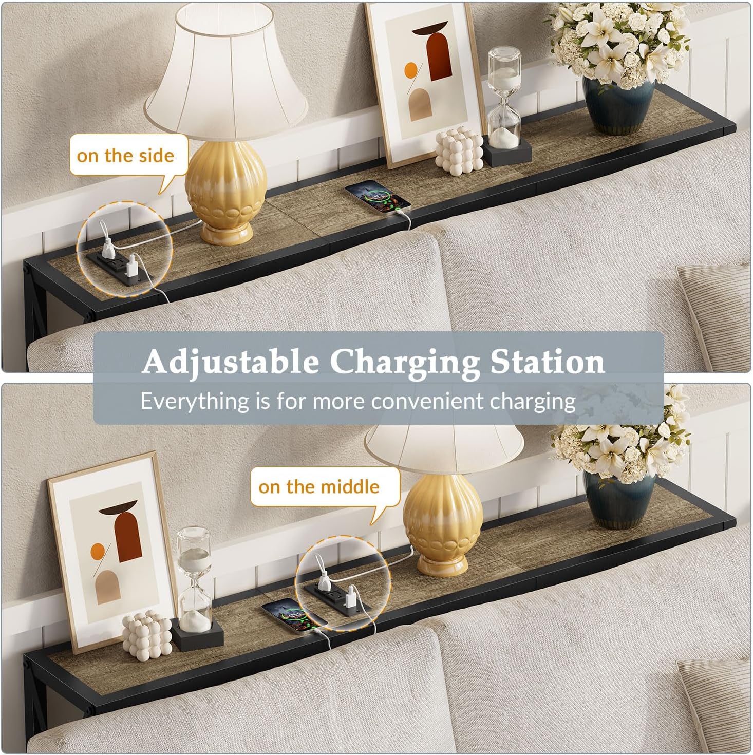 - Easy Assembly: Clear illustrated instructions and numbered parts ensure a hassle-free assembly process for this console table, allowing you to say goodbye to chaos quickly. Upgrade your home decor and charging game today with the multi-functional sofa table!