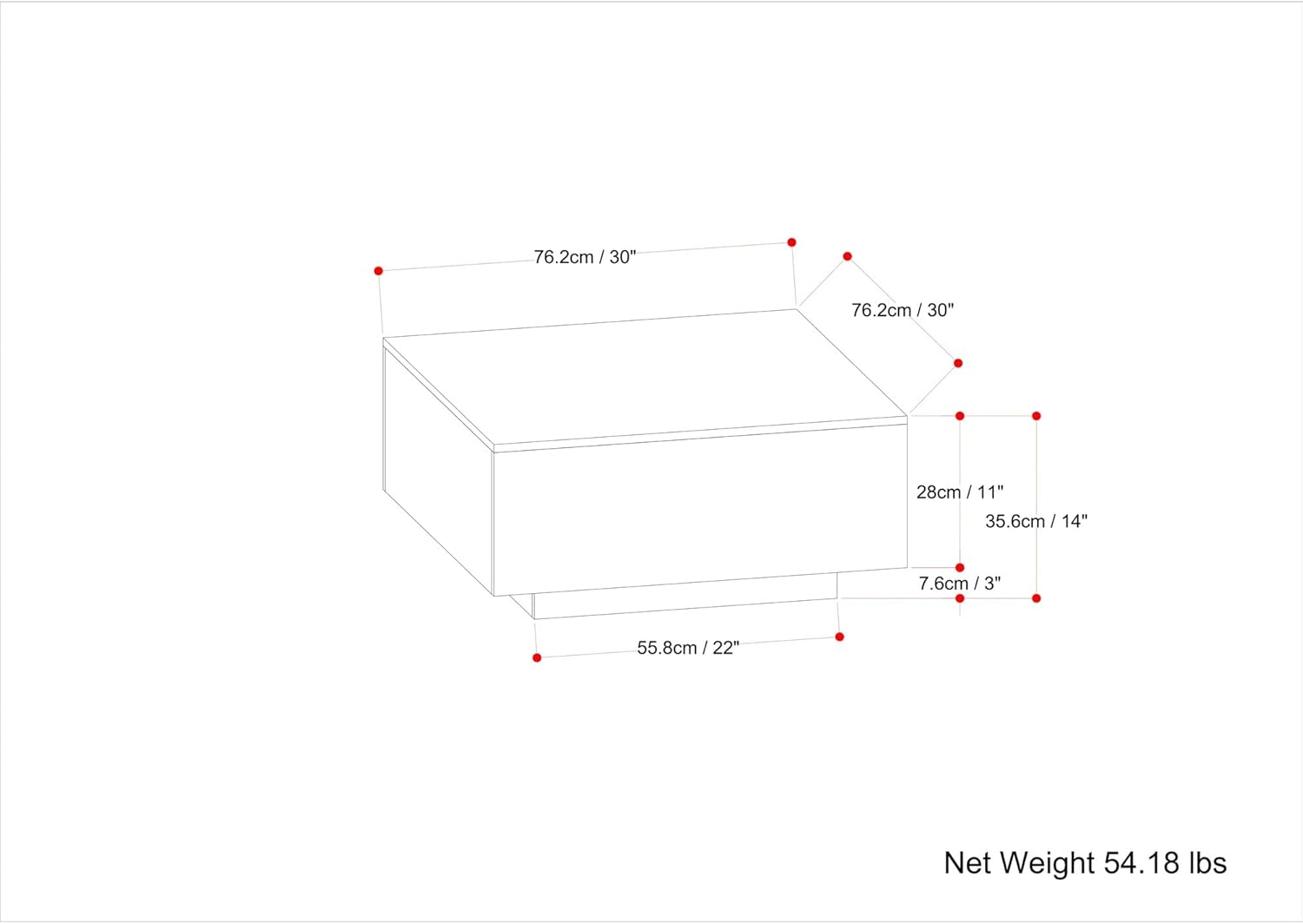 - DIMENSIONS: 30" d x 30" w x 14" h