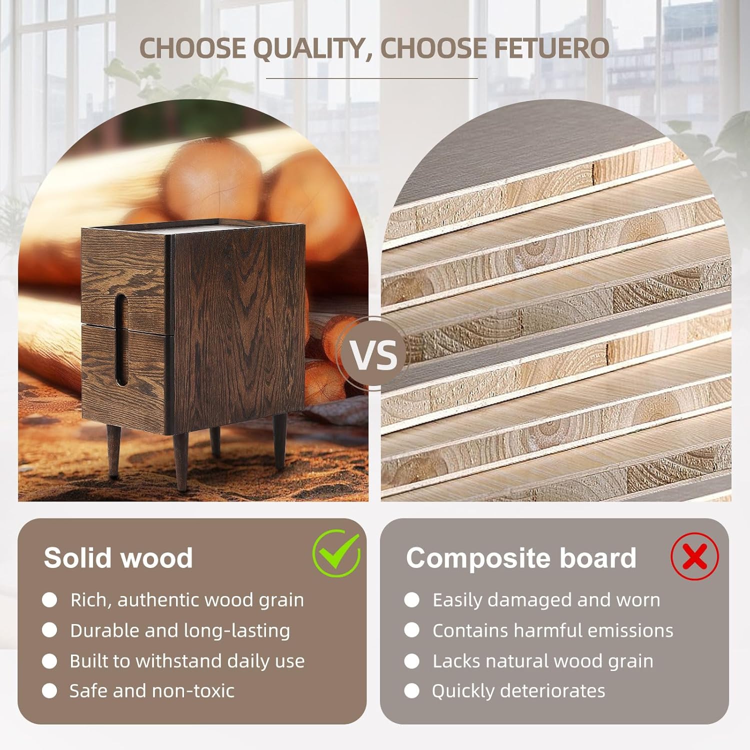 - Breathe Deeply Sleep Soundly: Crafted from solid North American FAS level oak with sustainable lacquer, this nightstand end table is a peace of mind for both family and the planet. Drift off knowing you've made a responsible choice that feels as good as it looks