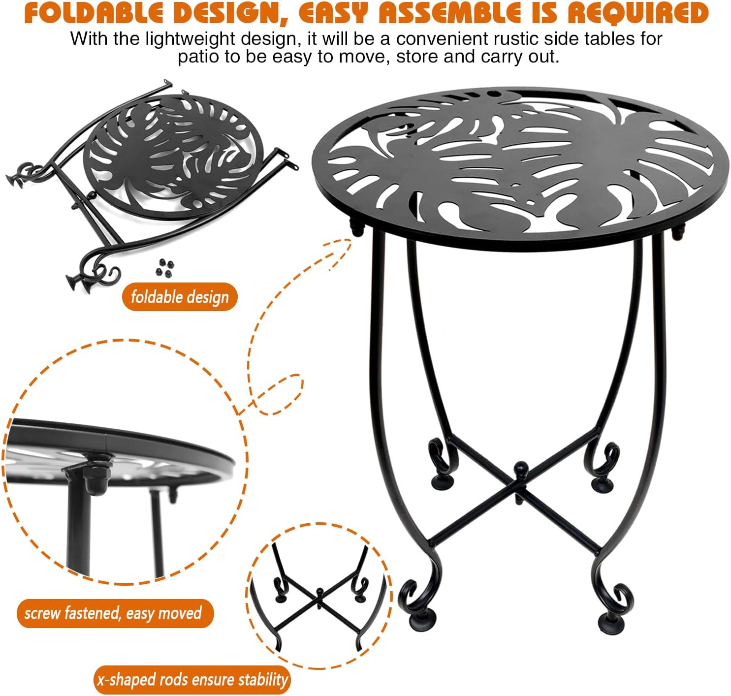 - ❥Sturdy and Durable: Made from high-quality metal, the outdoor side tables can hold up to 200 lbs. The four legs are welded with x-shaped rods to ensure stability and durability. They are designed to withstand outdoor conditions and last for years to come.
