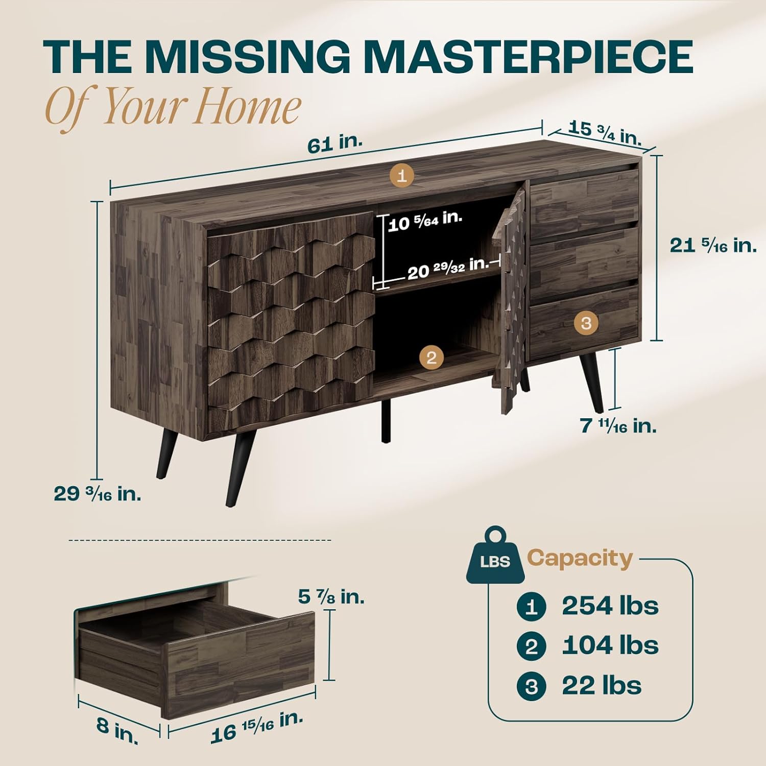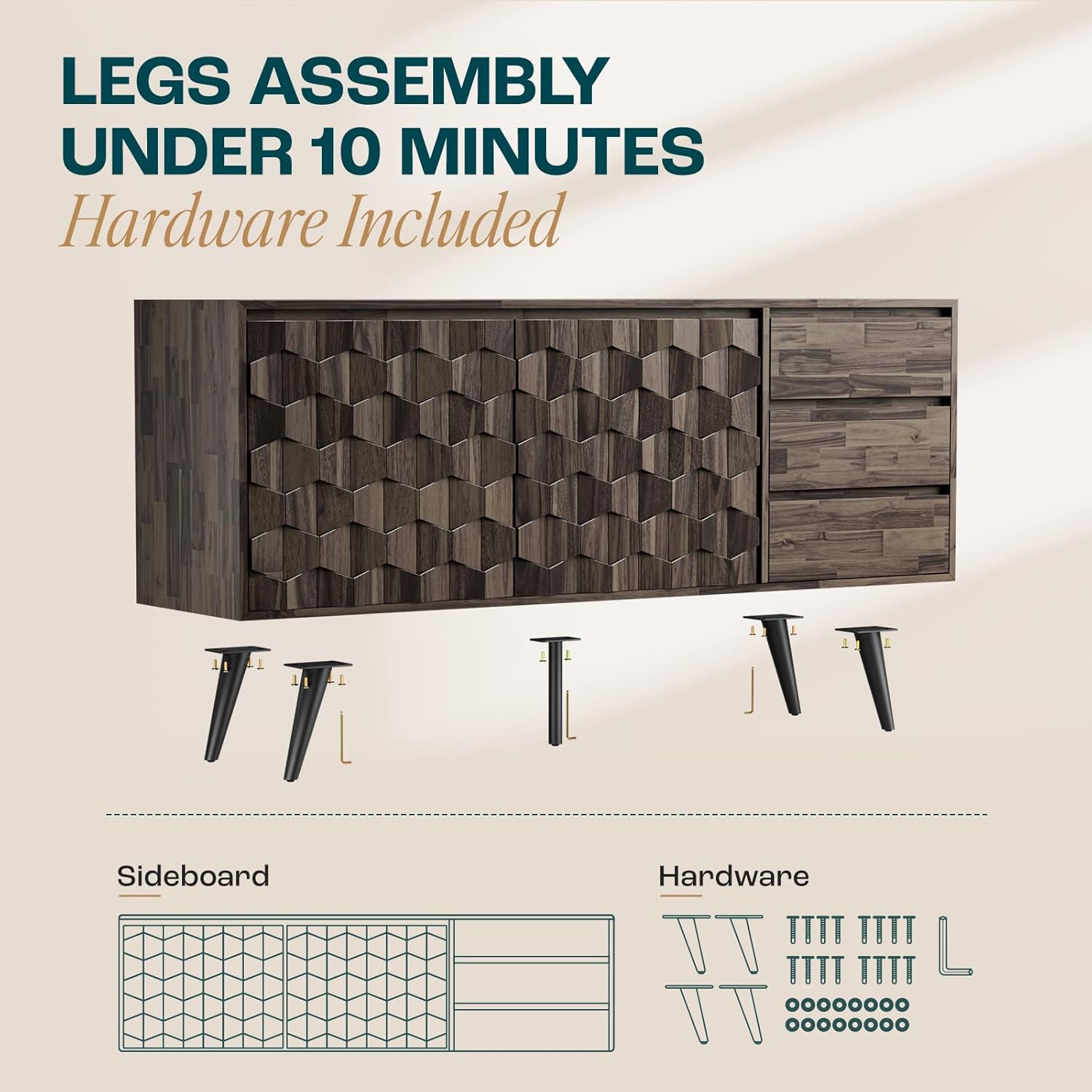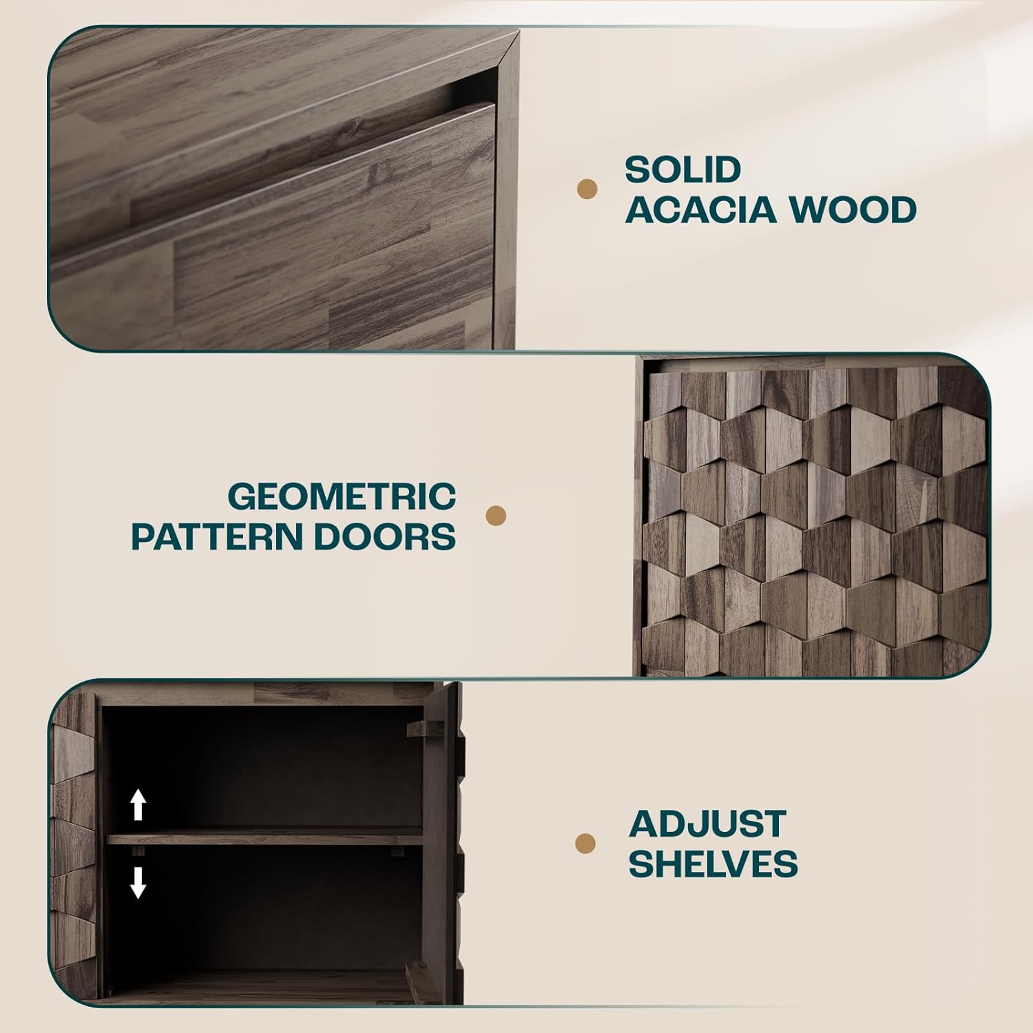 - ELEGANT MID CENTURY MODERN DESIGN: Add timeless appeal to your home with our mid-century modern buffet cabinet with storage; The unique geometric pattern enhances the elegance and sophistication of any kitchen, dining room, or living room decor