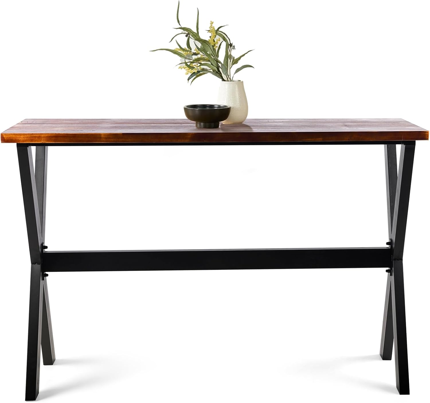 Bar Table, 47.24"L×41.33"H Bar Height Pub Table High Top Rectangular Sofa Console Table Kitchen Dining Coffee Table, for Narrow Space, Living Room, Indoor, Rustic Brown Wood, Industrial Black Metal