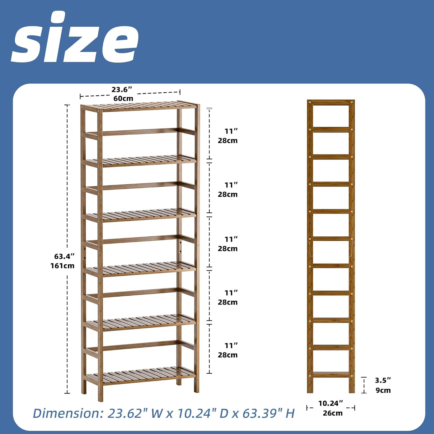 - SPACE SAVING FOR LIMITED SPACES - Footprint is only 1.68 sq. ft (23.62"W x 10.24"D) of standing shelf, yet offers you 6 tiers (63.4" H) of vertical storage space, perfect for tight corners or limited areas. Used alone or paired for more decorating option