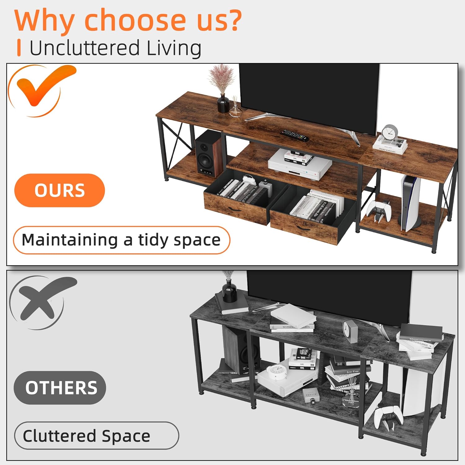 TV Stand with Fabric Drawers for 80 85 Inches TV - Entertainment Center and Industrial TV Console Table with Open Storage Shelves for Living Room, Bedroom- 79.1" Rustic Brown