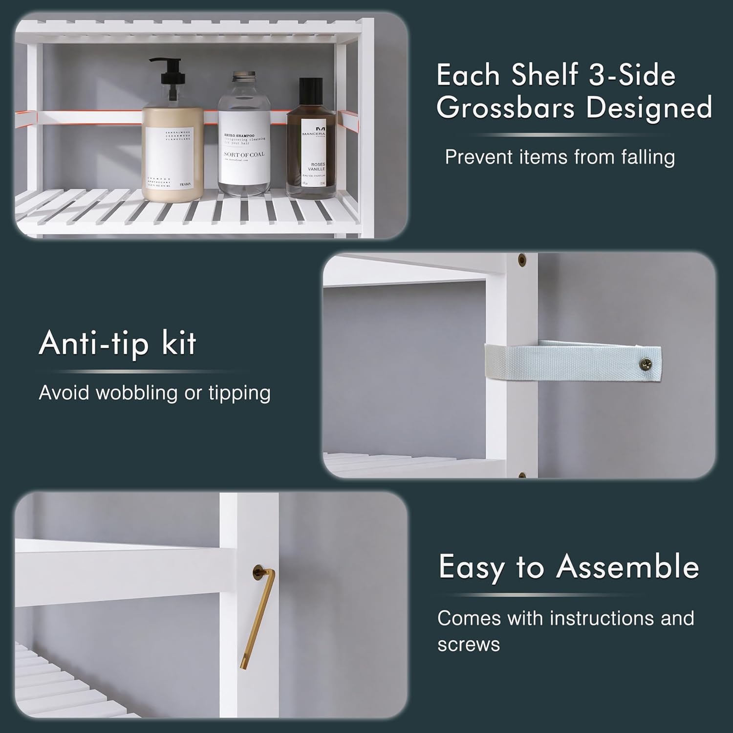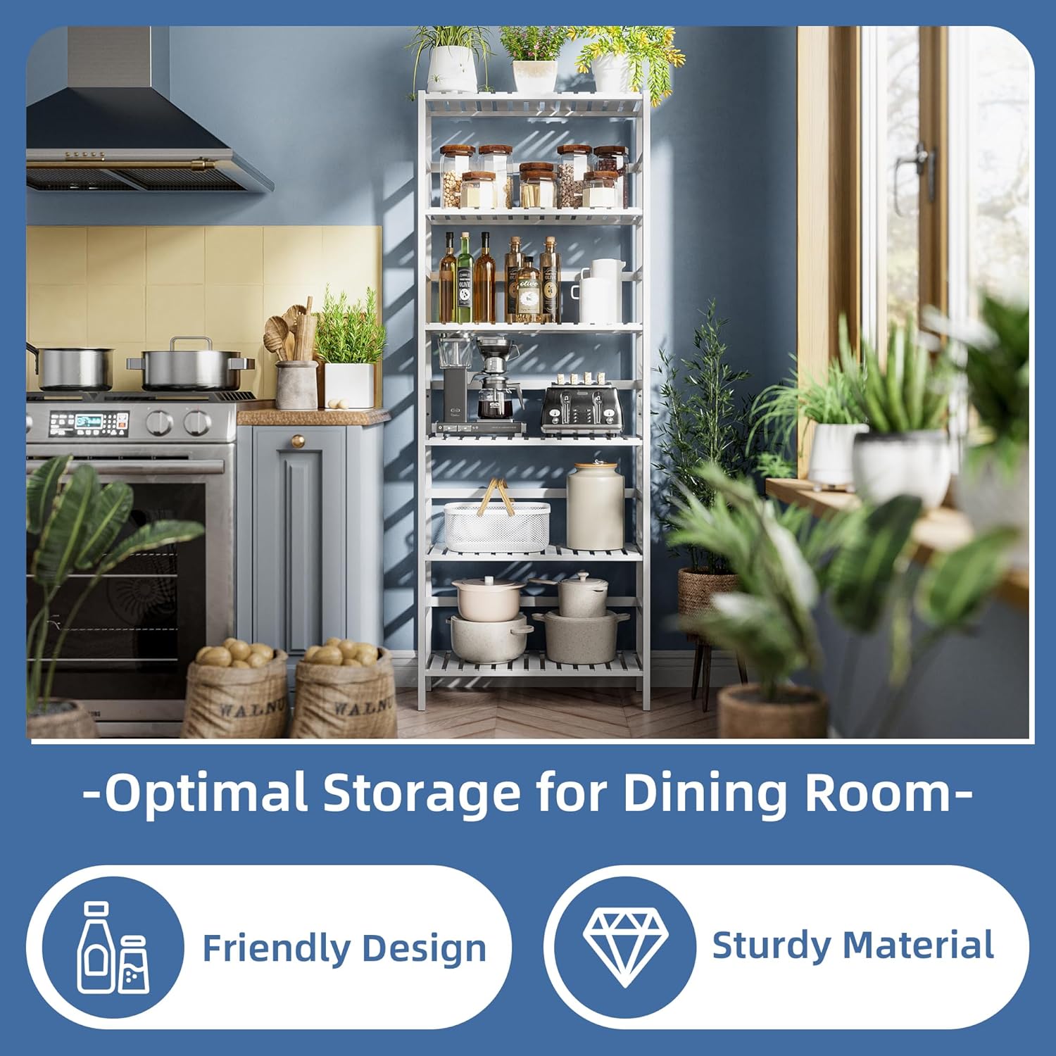 HITNET Bookshelf, 6-Tier Tall Bookcase Freestanding Bamboo Book Shelf Bathroom Storage Organizer with Adjustable Shelves, White