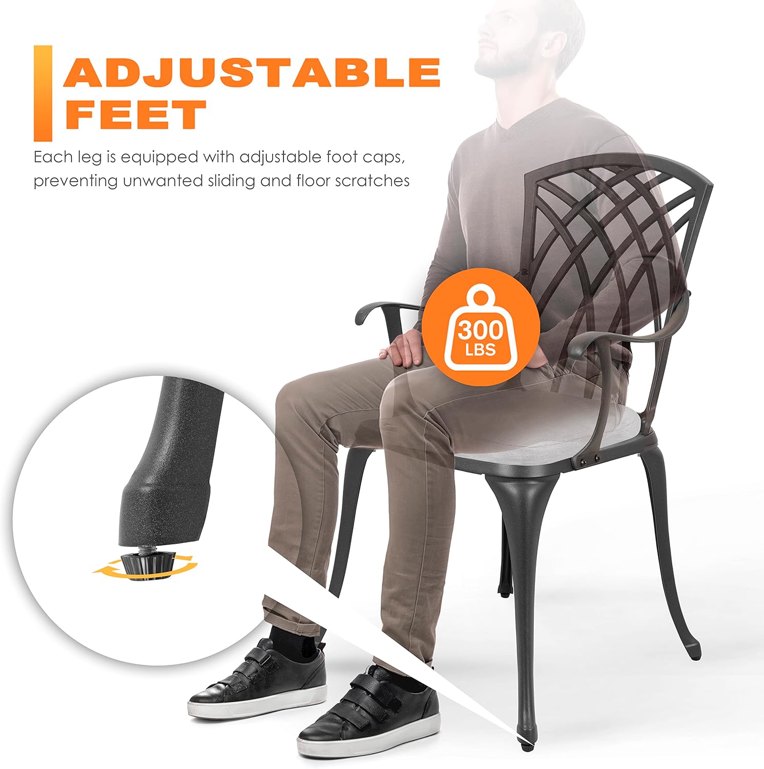 - EASY ASSEMBLE: Easily assembled with hardware packs of this 3 pieces cast aluminum patio bistro sets, adjustable feet keep outdoor patio set stability anytime and anywhere and prevent unwanted sliding and floor scratches